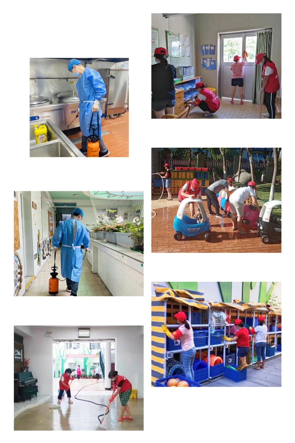 “爱国卫生人人受益、疫情防控人人有责”。为建设整洁、文明、安全的校园环境,有效预防各类传染疾病,切实保障师生身体健康,同时做好常态化疫情防控工作,为复学营造健康安全的校园环境。2021年10月4日,根据学校统筹安排,全体后勤人员积极参与到本次大扫除活动中,秉持“全覆盖、无死角、全清洁、彻整治”的原则,对幼儿园进行全方位大扫除和消毒。防疫清洁消毒过程中,后勤人员严格按照操作规范,根据不同物品,科学合理配制消毒液,不放过一处卫生死角,将各个班级、各功能室、办公室、走廊、桌椅、地板等进行全方位消杀。通过此次“爱国卫生运动”,校园的面貌焕然一新。