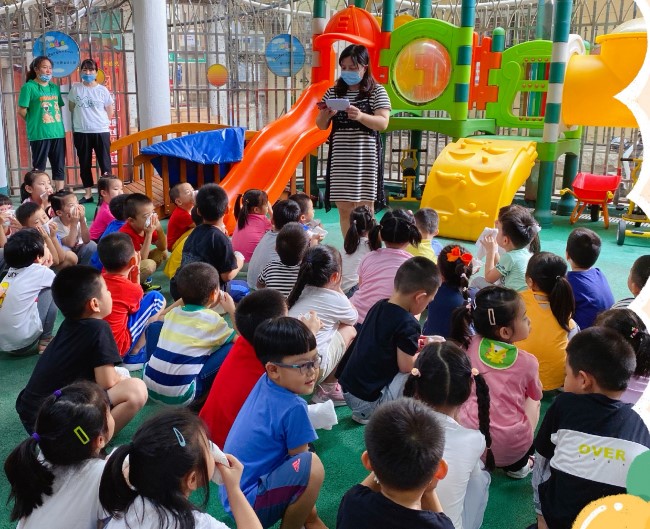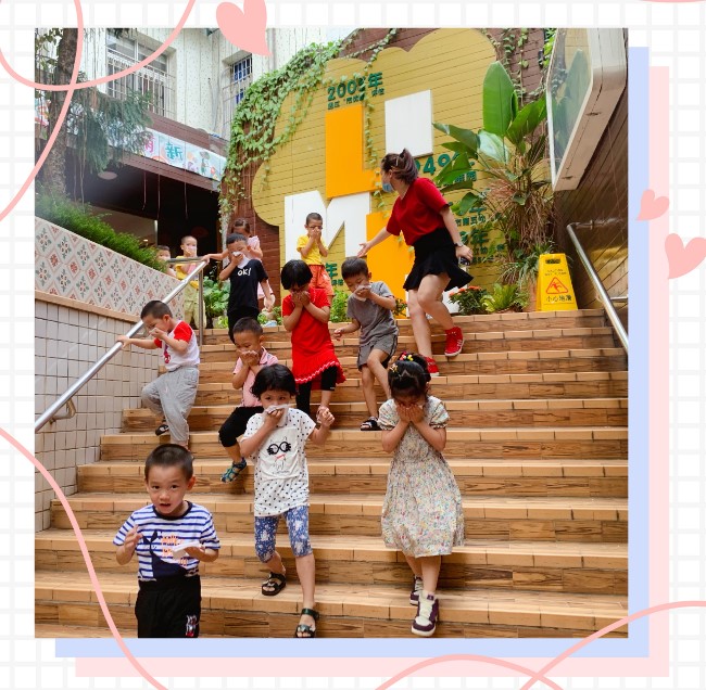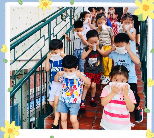 学期初我们进行了演练。园区的各楼层、门口负责的领导、教师提前到达所管区域,做好准备。随着急速的“笛”声,每个班级的幼儿在老师的带领下迅速排队,弯着腰,手扶楼梯的栏杆,紧张而有序,根据本班的疏散路线有秩序地撤离。幼儿全部安全的撤离到操场,各班教师清点人数后向总指挥示意。