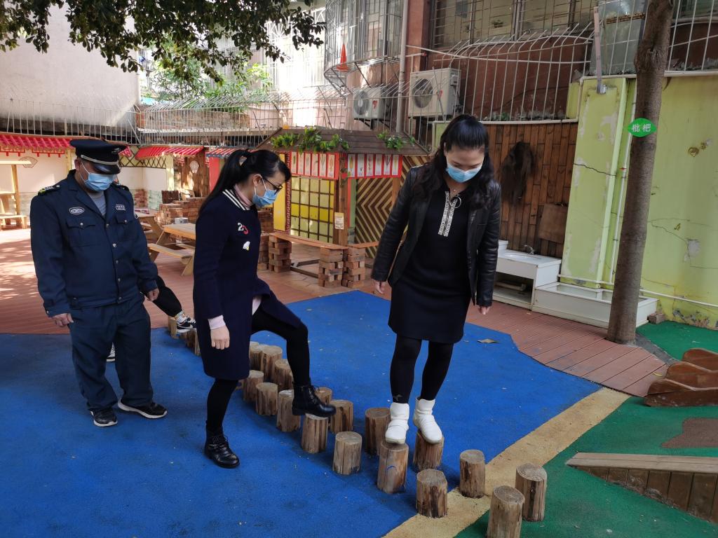校园安全巡查,排除隐患。我园园长、安全负责人与两园保卫干部严格落实校园安全隐患大排查工作、“巡逻护校园”行动,对校园各个角落进行全面的安全排查,制定了科学的巡逻区域和巡逻路线,特别是对幼儿园重点地段和部位进行白天、黑夜不间断地巡查,根据巡查情况认真做好记录,及时消除安全隐患。