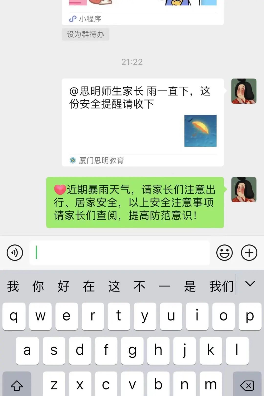 防汛备汛工作开展前,厦门思明实验幼儿园立刻建立健全防汛抢险救灾工作领导小组,园长任组长,切实加强汛期学校安全工作的组织领导,明确汛期安全岗位职责,强化措施,做到责任落实全覆盖、无死角,确保防汛备汛各项工作落到实处。及时进行防汛备汛安全大排查,采用地毯式展开排查,对园所各排水口、门窗、电、水、监控、防汛物资等开展了细致的排查工作,同时针对发现的安全隐患问题进行详细登记,并落实相关责任人,及时更换不符合安全要求或已损坏的设施设备。重点巡查幼儿园各个角落的排水口泄水情况,切实保证雨水来临时不堵塞,不返流。严格坚守“安全第一、预防为主”的原则,做到“未雨绸缪,防患于未然”,组织全体教职工开展防汛备汛演练活动。班级开展防汛备汛安全宣传教育,通过微信平台向家长们和教职员工宣传防汛安全小常识,进一步增强了大家的防汛意识。