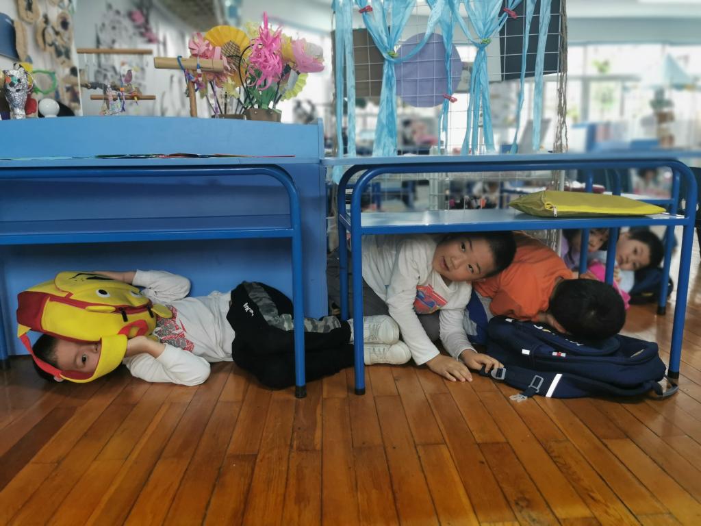 教师们通过看图片、念儿歌、观视频、读绘本等幼儿易于接受的形式讲解自然灾害自救相关知识,如熟悉“安全三角区”、练习疏散避震动作、了解逃生和疏散演练安全等提高幼儿自救能力。