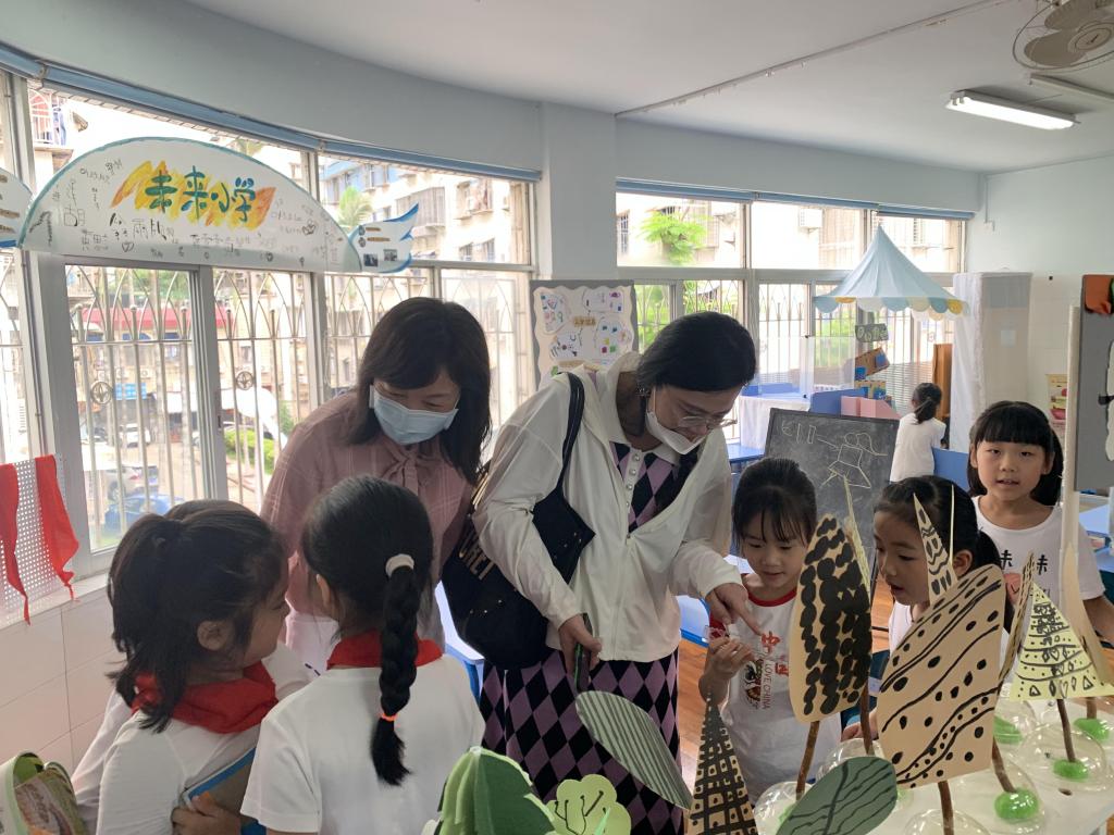 接着,民立二小的老师在孩子们热情地带领下,前往班级参观。孩子们积极地向老师们介绍班级开设的自然角课程;与老师们一起走进小学体验区,感受幼儿园式的小学生活。与此同时,孩子们还结合自己的问题清单进行采访,向小学老师了解更多关于小学的信息。