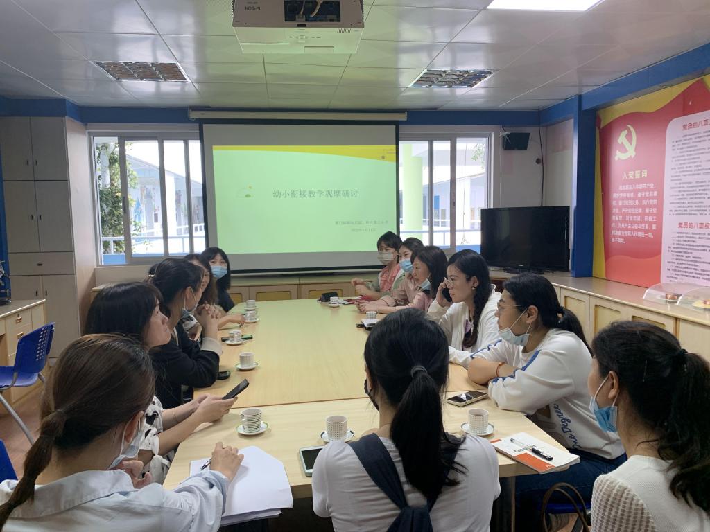 通过了解小学课程模式、教学模式,以及对孩子学习、生活、习惯等方面的要求。回园后,陈园长组织老师进行深入研讨,思考如何在一日生活中进行逐步渗透和铺垫。