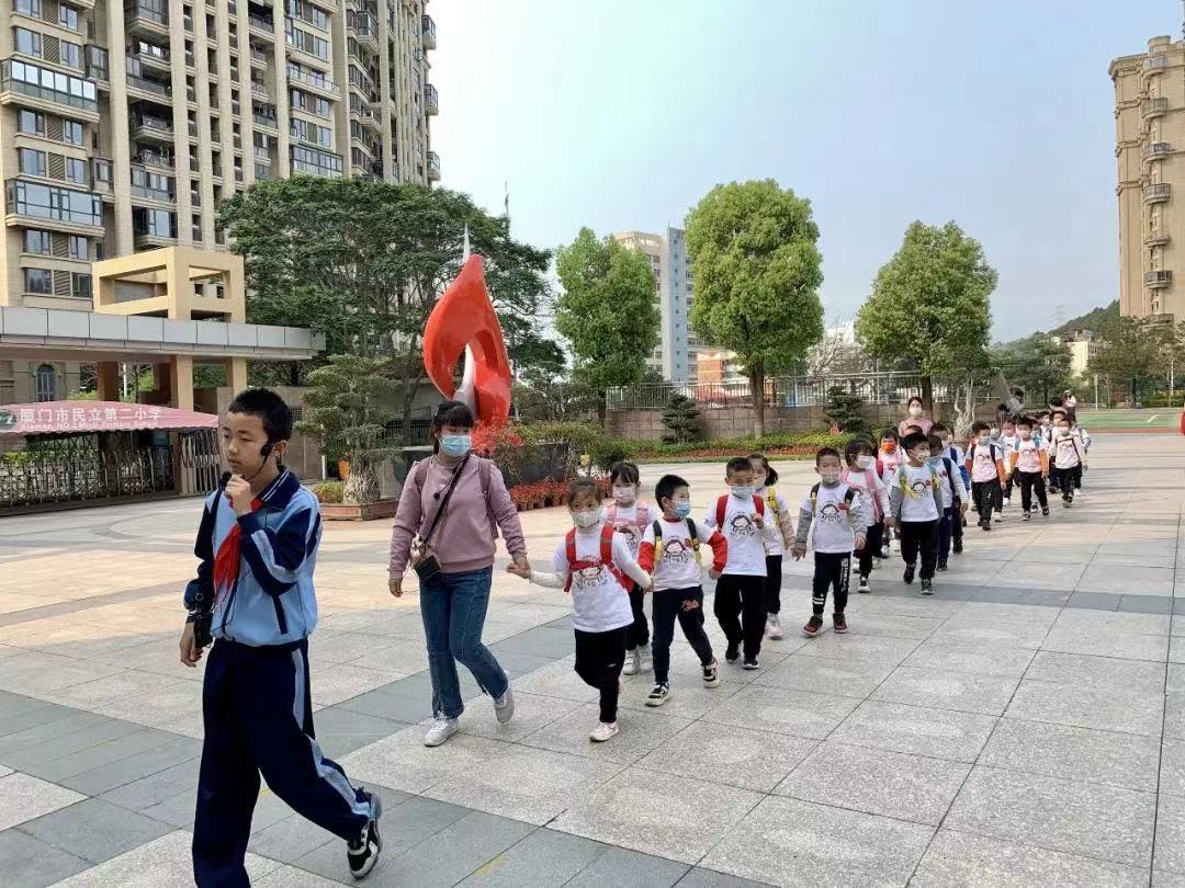 带着满怀的好奇,迎着明媚的阳光,仙阁幼儿园全体大班孩子在老师的带领下整齐地集合在厦门市民立第二小学校门前。小学,我们来啦!
