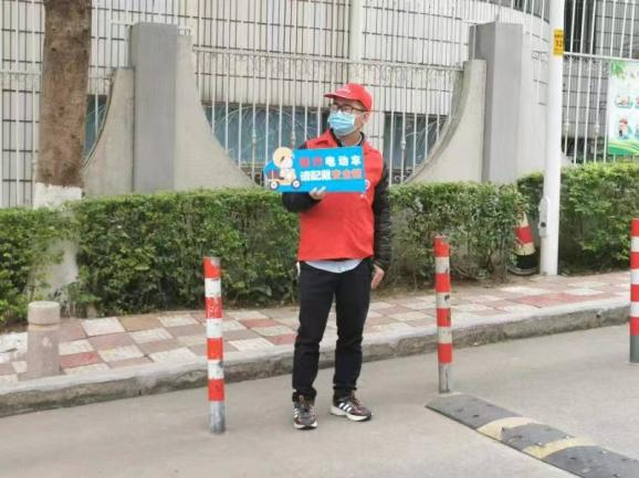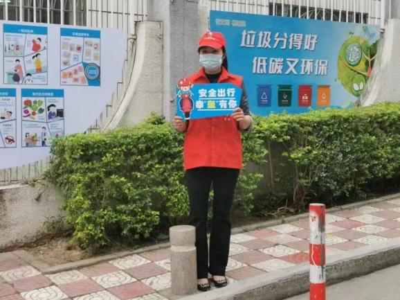 护学岗家长疏导交通,劝导行人走斑马线、骑行电动车戴头盔等,用实际行动营造有序、安全、文明、和谐的道路交通环境。