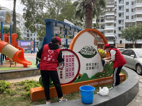 看,洁净家园的同时,老师们走进社区将文明的种子传播,传递着满满的正能量;用行动诠释着仙阁星火可以燎原!