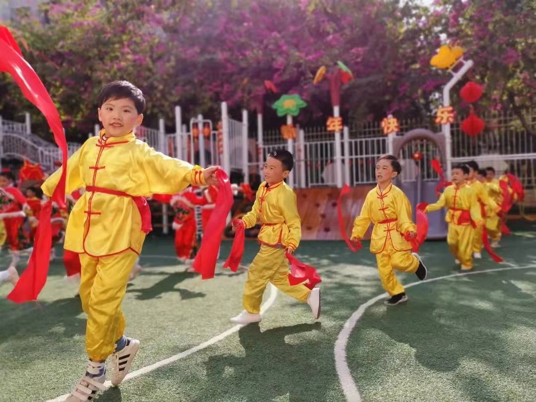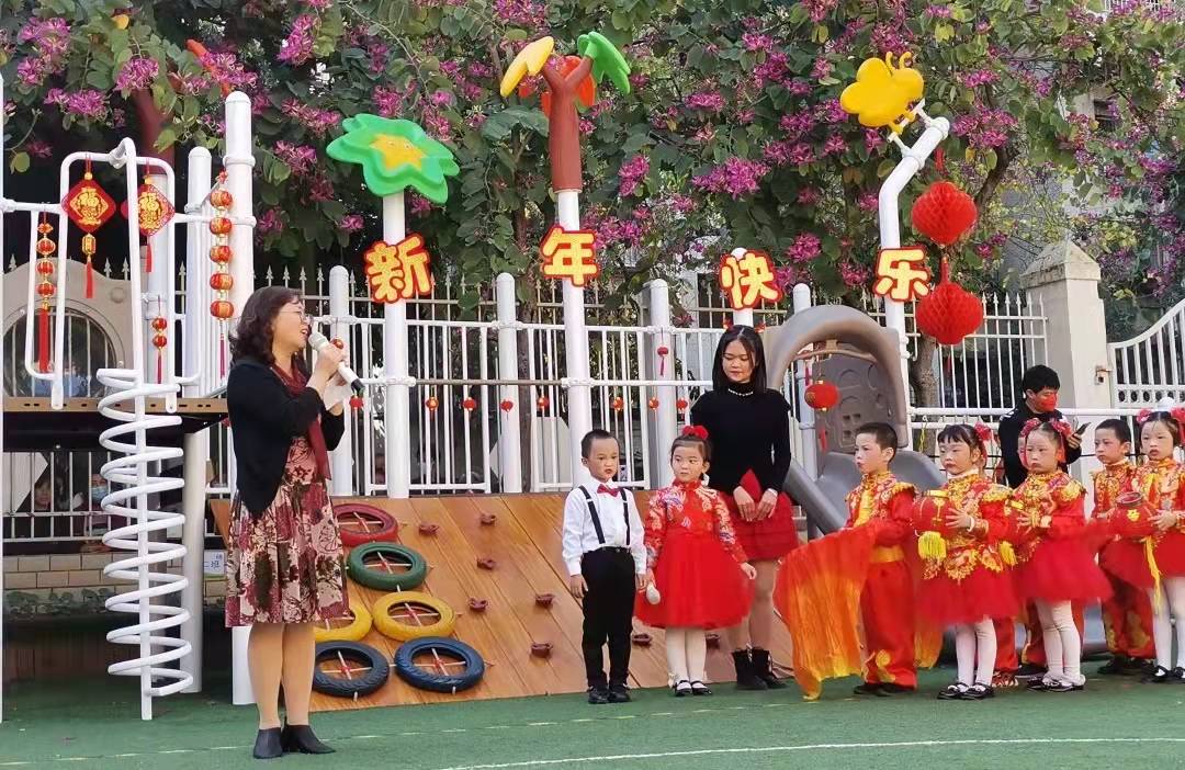 在气温骤降前,我们抓住2021年的最后一丝暖阳,怀揣着新年的祝福,着盛装,齐欢聚,华丽地启动了迎新年的庆祝活动。每个班级的表演精彩纷呈、各具特色,传递着新年的诉说与愿望。听,园长妈妈温暖有爱的叮咛与新年祝福。瞧!老师们激情四射的开场舞,让孩子们沐浴在新年的喜悦中。小班宝贝化身虎宝宝表演《吉祥娃娃》,变身可爱的福气娃娃,踏着欢快的步伐向我们走来,萌翻全场。中班《新年到,乐淘淘》《听我说》《中国么么哒》等,富有节奏的音乐下踏着轻快的舞步,光芒四射,台下的小观众们目不转睛,不时跟着节奏拍手、踏脚。最让人耳目一新的是大班哥哥姐姐带来的《少年中国强》,将一曲正气凛然的歌曲编成适合孩子们观赏的集体舞,赢得观众们的阵阵掌声。最后,大一班和大二班的哥哥姐姐以不同风格的舞曲为活动增光添彩,有年味十足的《过年啦!》、喜气洋洋的《喜庆欢歌》。在热闹的教师集体舞表演《相亲相爱》表演中,元旦迎新集体舞表演落下了帷幕。
