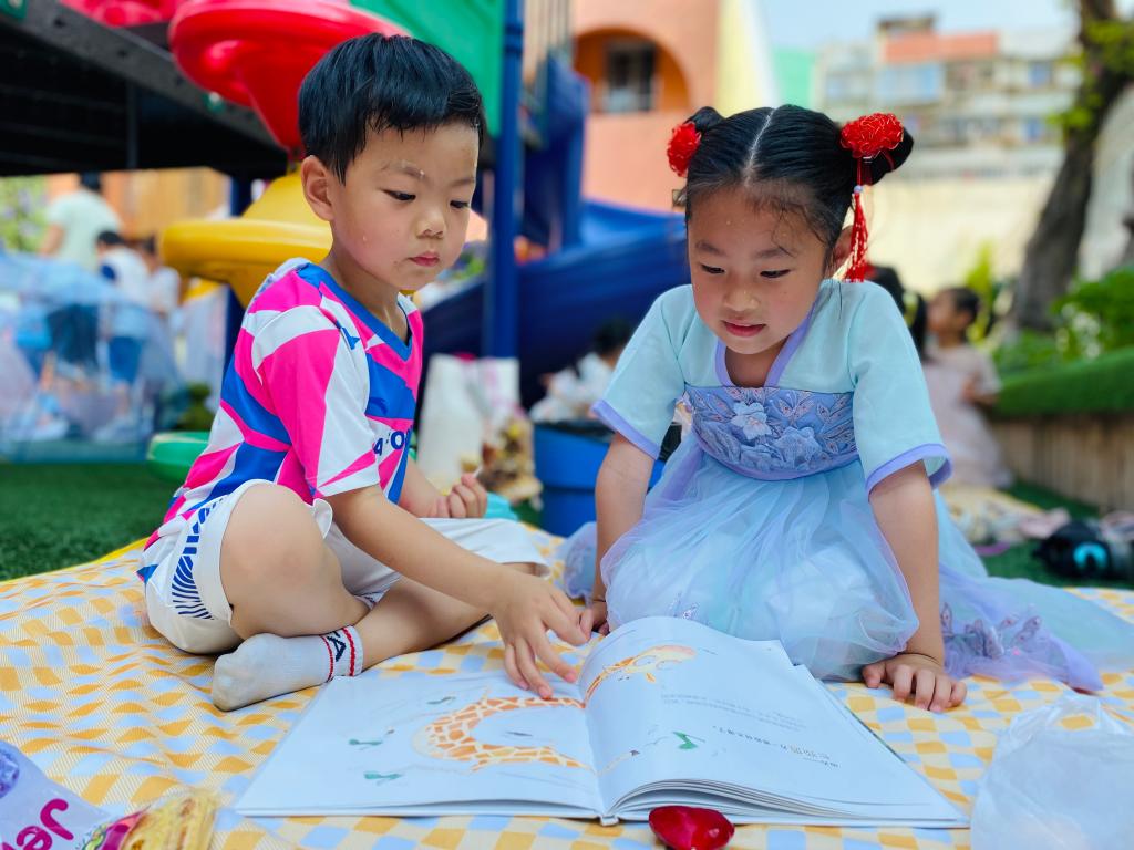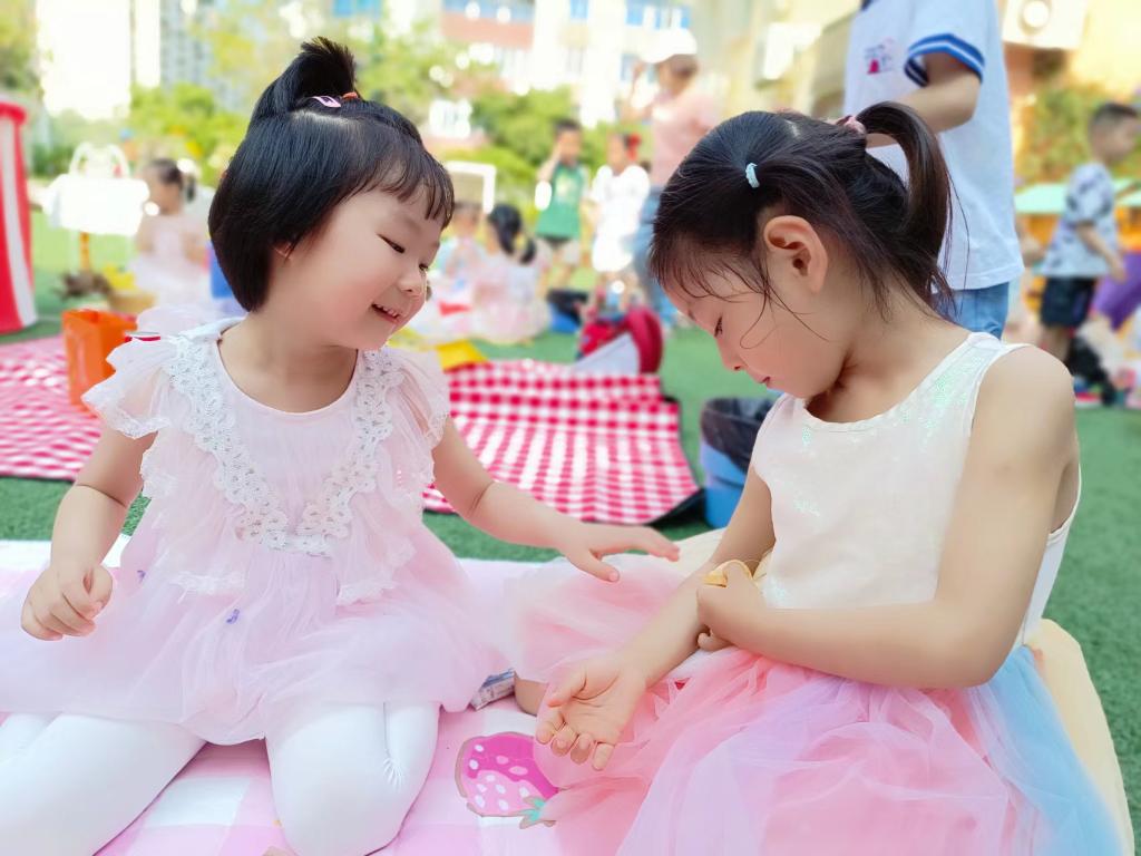 天气晴,宜收集快乐。春游啦!孩子们打扮自己,带上美丽的心情,捎上喜欢的零食,背上小书包和小伙伴们手拉手,开启别致的“春游”模式。草坪上三三两两美食与好朋友分享;小帐篷里也是一个小天地,伴着花香翻开图书,在这静谧又美好的小角落里徜徉;听,快乐的笑声从户外活动的大圆球里传出来,孩子们的秘密基地真不错!草地上我们自由玩耍,秋千荡起来,五颜六色的泡泡吹起来,让快乐飞翔。哇,还有自助下午茶,孩子们喜欢的水果、奶酪棒、养乐多、果汁、山楂卷……空气中弥漫着甜甜的气味,快乐的小身影就像一群春天里放飞的小鸟。