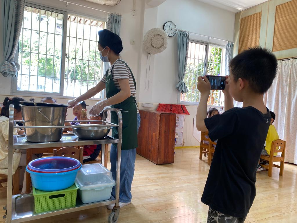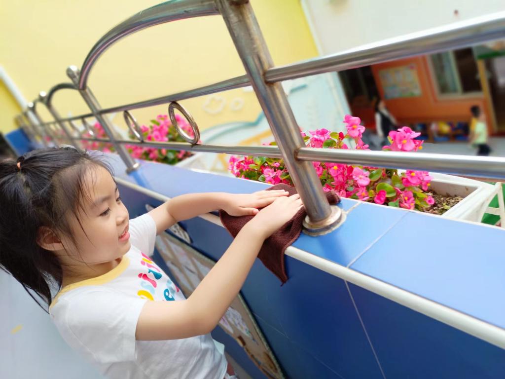 特别的节日里,孩子们很想了解各行各业的劳动人民,通过“采访”的方式,了解家人的职业,尤其是在这次疫情中做出突出贡献的特殊职业。小萌娃带着老师的手机,咔嚓,在幼儿园里寻找身边最美劳动者的身影。瞧!大带小活动中,擦桌、扫地、整理样样行,欢快的脸上洋溢着劳动的快乐。让自我服务的意识延续到生活和家庭,小小手洗碗、择菜、垃圾分类,开始劳动啦!再看,孩子们亲手制作礼物,充满真诚;动手折朵爱心小花,表达孩子心中的爱戴;稚嫩的画笔绘出心中的爱;再唱一首“谢谢你”,传递感恩与感谢。一言一语总是情,萌萌的声音说句悄悄话送给“最可爱的人”,感恩日日夜夜坚守一线辛勤付出的劳动者。