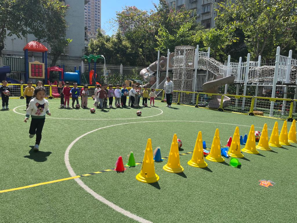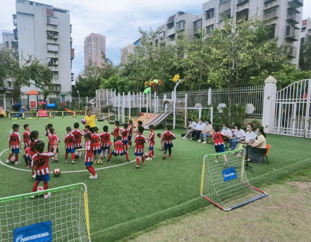 在我园足球课题扎实开展下,在陈梅英园长的带领下,全体教师围绕《3-6岁儿童学习与发展指南》精神,以足球为载体围绕健康活动的核心经验,进行为期两周的足球观摩研讨活动。