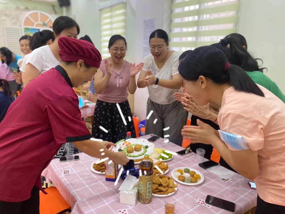 皓月当空,厨房阿姨们的“点心秀”点缀了这美好的夜晚,迎来全体教职员工的阵阵掌声。瞧,老师们十八般武艺给彼此献上一份特殊的“礼物”。一曲《星星点灯》照亮各位老师的心;真情实感的朗诵《最美的誓言》道出了浓浓师情;动感、欢快的舞蹈《爱你》充满活力;保育老师一曲《谢谢你》温情又质朴。燃爆全场,当然还少不了游戏环节啦!挑战的既是彼此的默契,更是节日里的“双倍”快乐。
