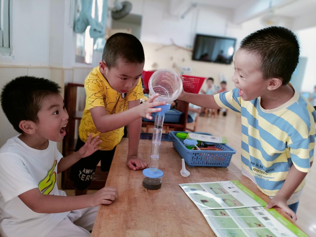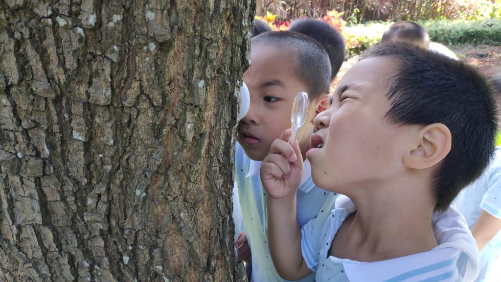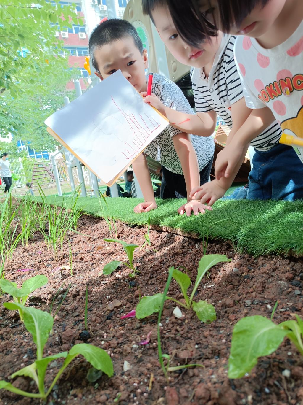 科学就在孩子们的身边。“生活即教育”,大自然和生活就是最好的课堂 。大自然藏着许多秘密,从儿童的视角出发,教师追随幼儿的脚步,我们带领幼儿走进自然、亲近自然、探索自然。瞧,刨土、浇水、施肥、观察、记录、采集标本等,三五成群呢喃细语,尽情探索发现。