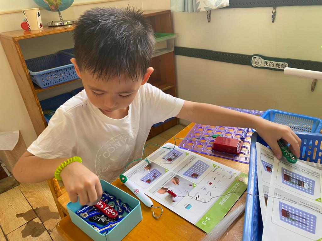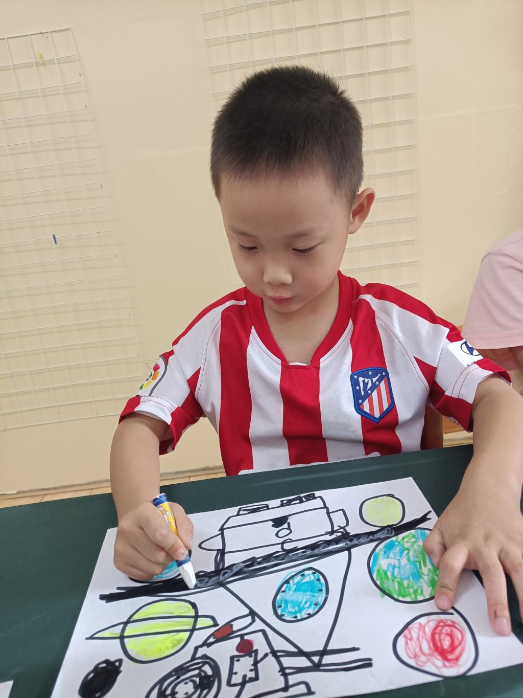 各班单元主题“你好,太空”、“身边的科学现象”、“航天员的生活”、“自然角的秘密”等活动中,教师发现幼儿的兴趣,激发幼儿的探究欲望。与此同时,深入开展科学领域研讨活动,组织老师进行科学观摩研讨活动,创设丰富的科学区材料,支持幼儿的科学探索学习。通过科学区开放观摩,促进教师的专业成长,支持幼儿探究兴趣。此外,各班还创设“科普主题的观影”活动、科普向未来主题绘画展、亲子科学玩具制作等丰富多彩的活动支持幼儿表达与创作。