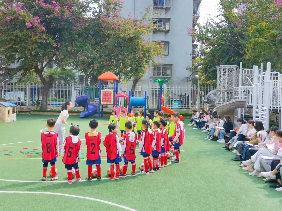 刘燕真老师带来的大班健康活动《我是投弹小能手》,孩子们化身成小士兵,穿梭在“枪林弹雨”中,简单的纸团让孩子们在情境中学习、游戏。黄珊珊老师带来的足球游戏《宝石争夺赛》,从创设比赛情境“取宝大战”“宝石争夺”“智取宝石”中都体现了老师的智慧,整个活动趣味十足,“燃”动全场。
