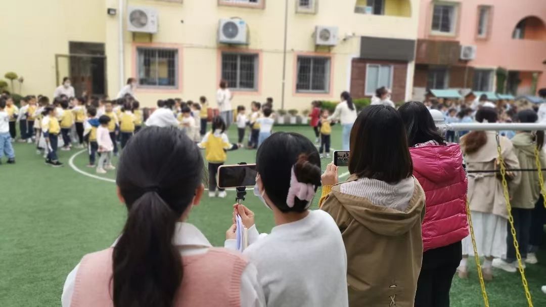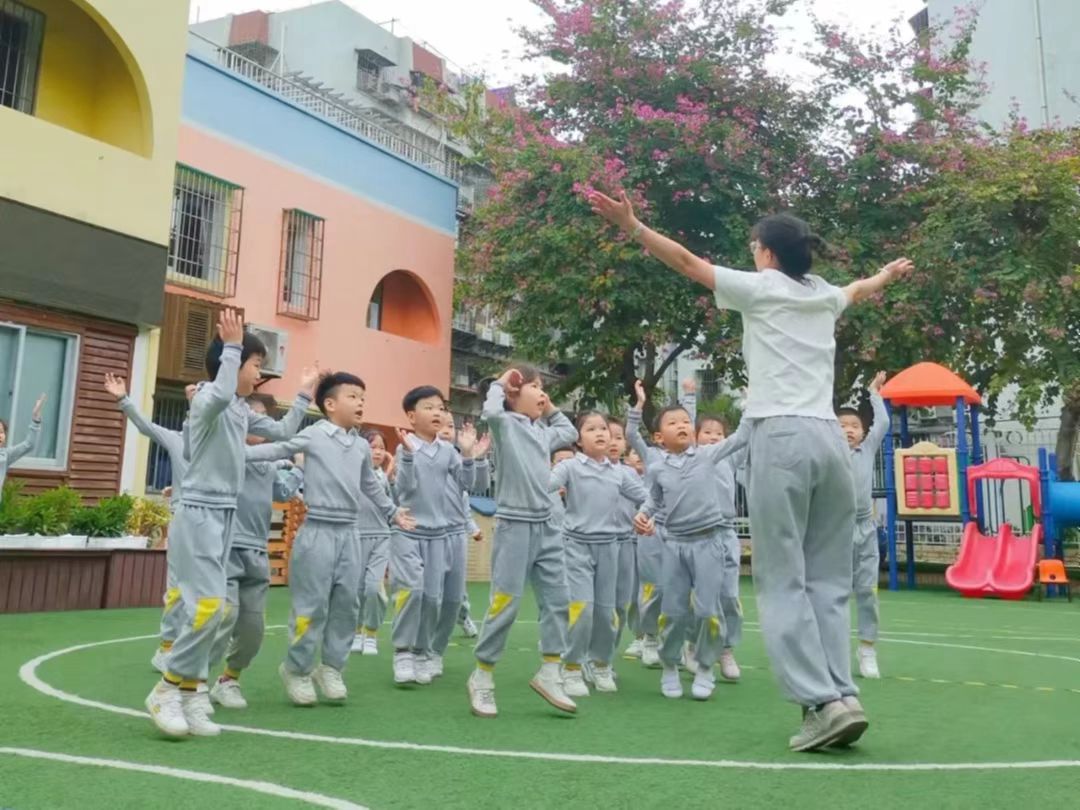 微微的风,阳光透过紫荆树,幼儿园的户外丰富多彩,走、跑、跳、爬、投掷、跳长绳、足球赛,孩子们尽情运动是春日里最美的风景线。陈梅英园长带领参观团边观摩边交流,在互动中了解我园如何有效盘活户外场地及户外活动创设亮点与思考。接着,三个段的活力早操让参观的老师眼前一亮,阳光下孩子活泼 的样子比春天还美。