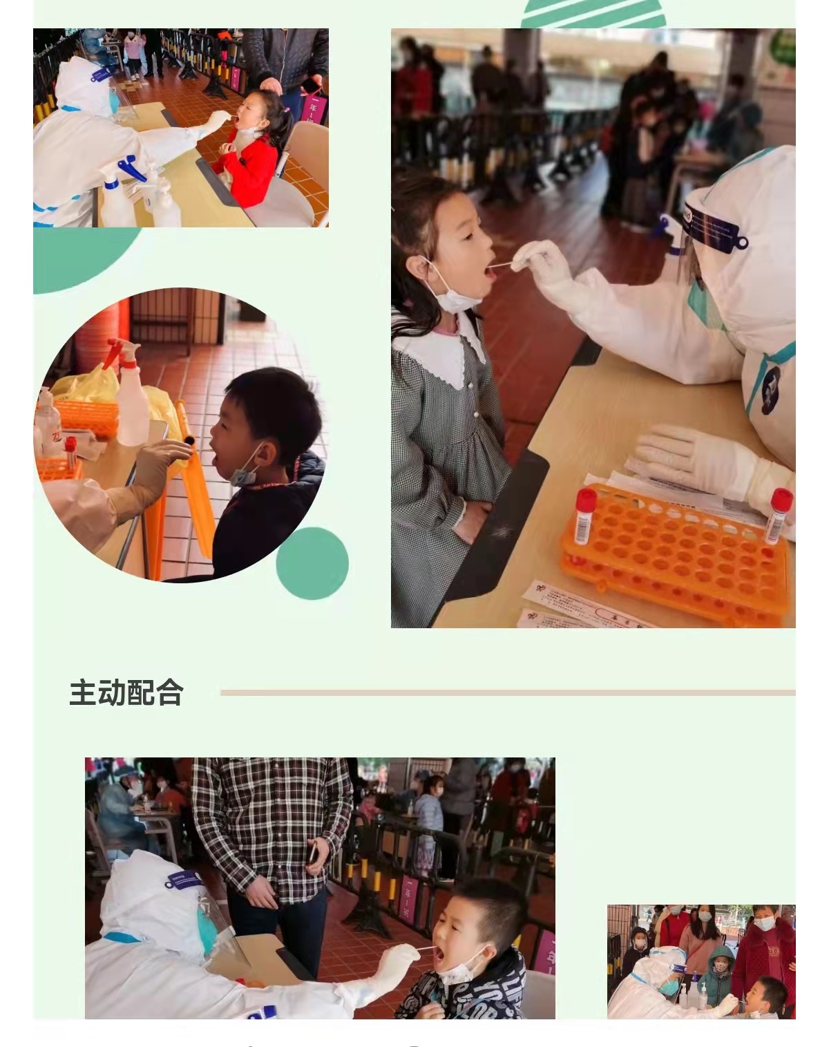 2月14日下午,全体教职工提前到岗做完核酸检测之后,各司其职迎接幼儿。在检测过程中,老师们耐心引导家长和小朋友们有序进行核酸采样,孩子们主动配合,在1个小时内顺利、高效地完成了全园师生的核酸检测工作。针对个别尚未返厦的幼儿,班级老师将持续跟进,确保做到应检尽检,无一漏检。