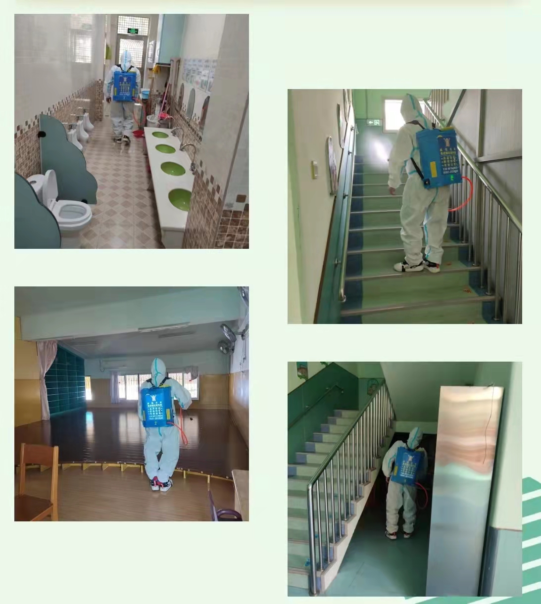 为迎接孩子的到来,幼儿园全面进行大消杀:厨房工作人员、保育老师在开学前对厨房、班级材料、户外材料全面消杀,以确保环境卫生、食品安全;专业的水质检测人员,对幼儿园饮用水进行检测,保证用水安全;专业的消毒人员对幼儿园进行全面消毒,操场、食堂、班级、功能室一个不漏,做到全面消杀无死角。