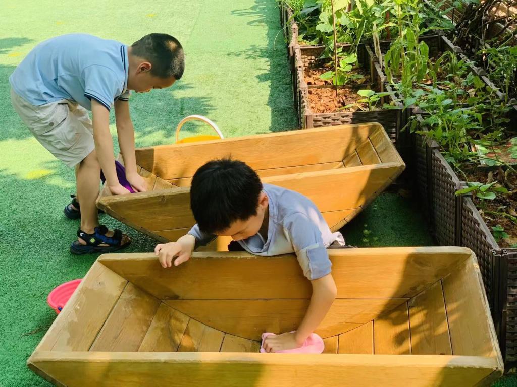 镜头三:“争做劳动者” 全园幼儿积极收集劳动材料,争做劳动者。27日上午,当“劳动最光荣”的歌声想起,幼儿园的每一个角落可见小小劳动者的身影,有的幼儿给桌椅、玩具洗澡,有的给花草浇水,还有的整理菜地...孩子们干得热火朝天。劳动不仅在幼儿园开展,还延伸到家庭中,家园携手制定劳动周计划,鼓励幼儿积极参与并记录自己的劳动,争做家庭劳动小能手。