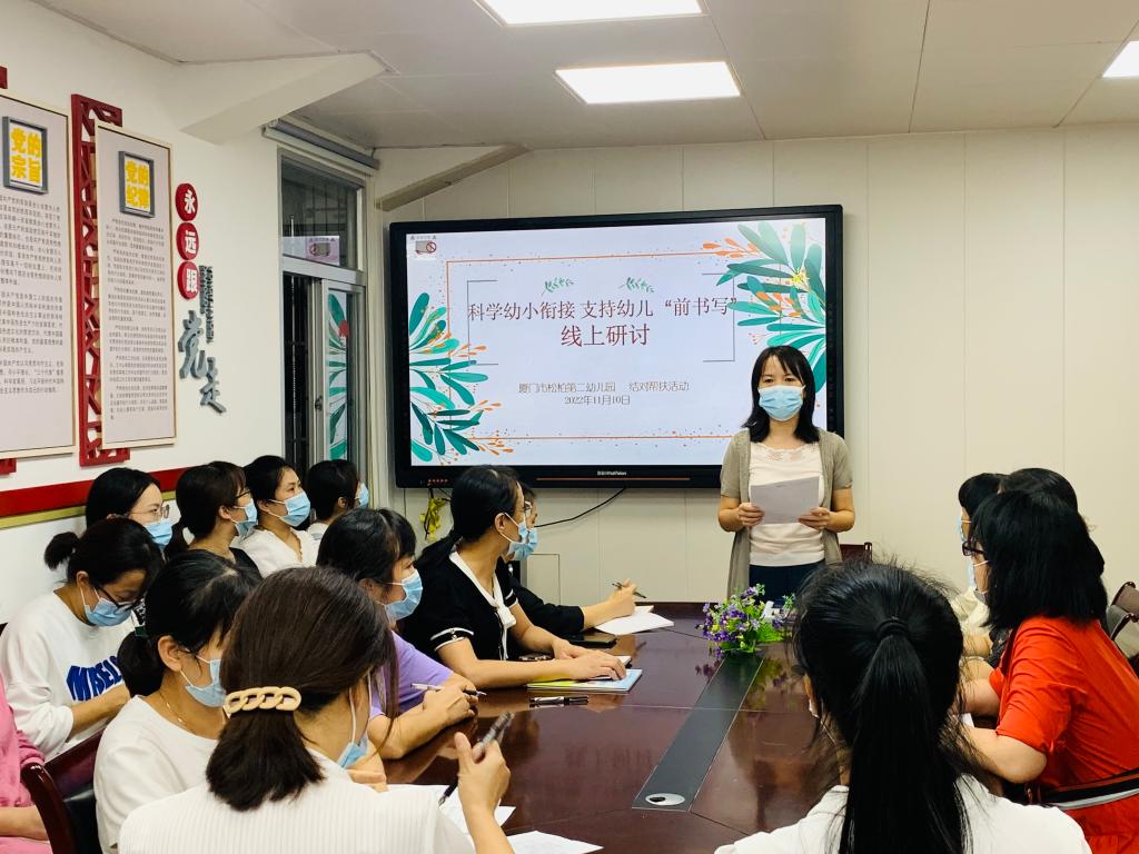 根据《关于做好2022年思明区东西部协作工作的通知》,为加强园所之间结对帮扶的作用,增进教师的教学教研能力,实现优质教育资源共享,全面提高教师的专业能力和学校教育教学质量,2022年11月14日,厦门市松柏第二幼儿园与帮扶园永宁县闽宁第一幼儿园,开展了“科学幼小衔接 支持幼儿前书写”的线上研讨活动。