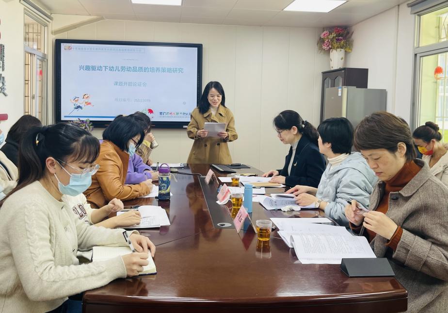 一、开题报告:经福建省教育厅审核批准,由王素敏园长申报主持的课题《兴趣驱动下幼儿劳动品质的培养策略研究》立项。王素敏园长从研究背景、核心概念、研究内容、研究目标、研究步骤、预期成果等方面作了详细报告,并对接下来的课题研究工作进行了详细安排。开题报告论述有据、详细明确,为后续的课题研究奠定了基础。