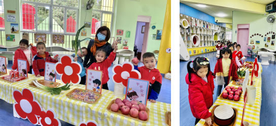 在二楼大厅,孩子们摸摸桔子,大吉大利;摸摸旺旺,成长旺旺;摸摸大葱,聪明伶俐;摸摸棒棒糖,身体棒棒;摸摸苹果,平平安安;敲敲小鼓,一鸣惊人。在游戏中他们感受着来自于老师妈妈寄予他们的祝福,也体会到了新学期即将到来的开心与愉悦。