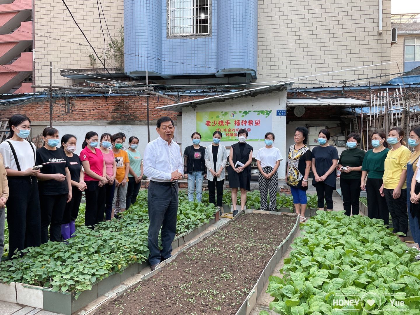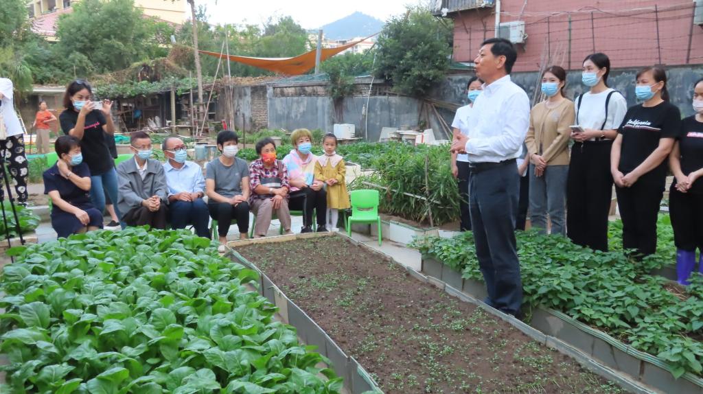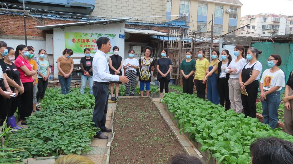 10月28日下午,厦门市金鸡亭幼儿园邀请原厦门华侨亚热带植物引种园主任、高级工程师童庆宣来到幼儿园校外种植园地,为全体教职工和关工委成员讲授蔬菜种植方法和技巧,深化幼儿园园本课程和“爱劳动教育”品牌建设。