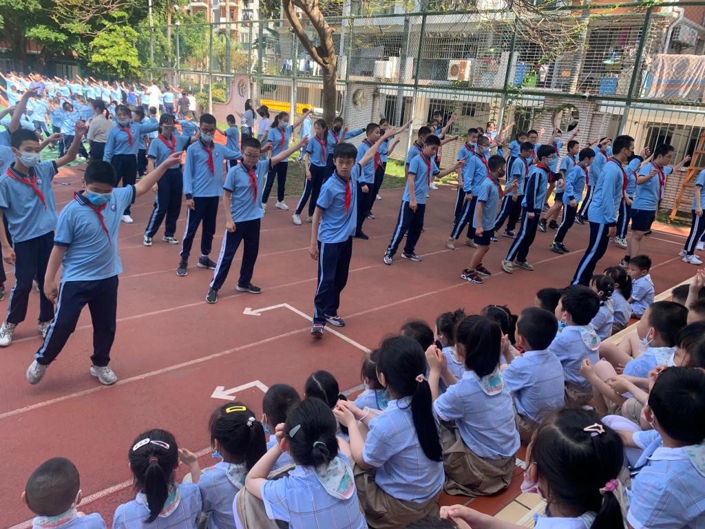 孩子们满怀着好奇和期望,走进了期盼已久的小学校园,开启了入校初体验。金鸡亭小学每条走廊、每个楼道都独具文化特色,一切都让孩子们感到新鲜。他们努力地寻找着小学与幼儿园的不同之处,认真地观察着校园里的每个角落。在活动中,孩子们第一次站在小学的大操场上;第一次参加小学升旗仪式;第一次观看哥哥姐姐的表演;第一次参加大课间……随后,孩子们怀着憧憬参观了一年级教室,体验了一把小学生的课堂生活,还采访了哥哥姐姐,使他们对小学生活有了更深的了解。