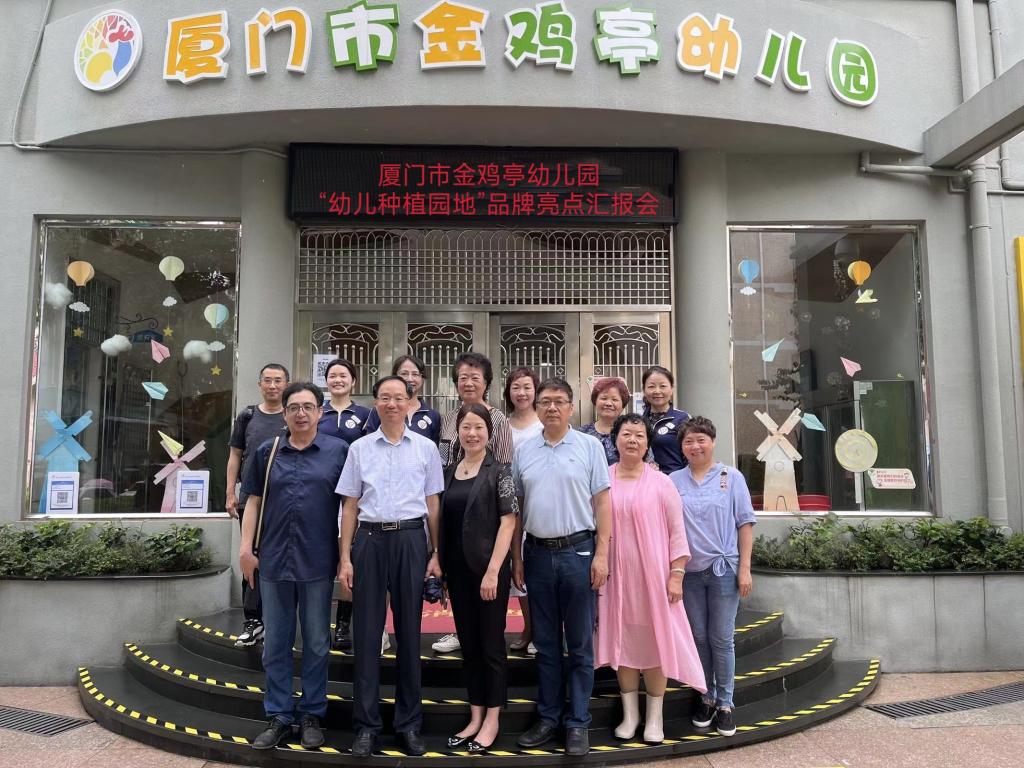 6月10日上午,思明区关工委副主任董仁生、一级主任科员沙龙武,思明区委教育工委委员、思明区党组成员、调研员马晓毅,区关工委区教育系统关工委常务副主任李子朔,副主任洪清悦、杨端端、葛晓英,秘书长周雪华等领导一行莅临厦门市金鸡亭幼儿园开展“幼儿种植园地”品牌亮点汇报活动。片区18所幼儿园关工委副主任、金鸡亭幼儿园关工委和师生等参加活动。