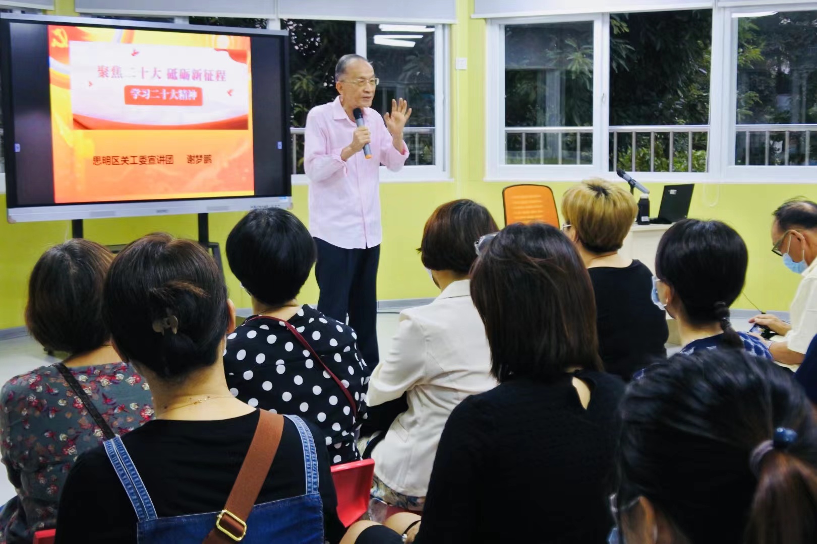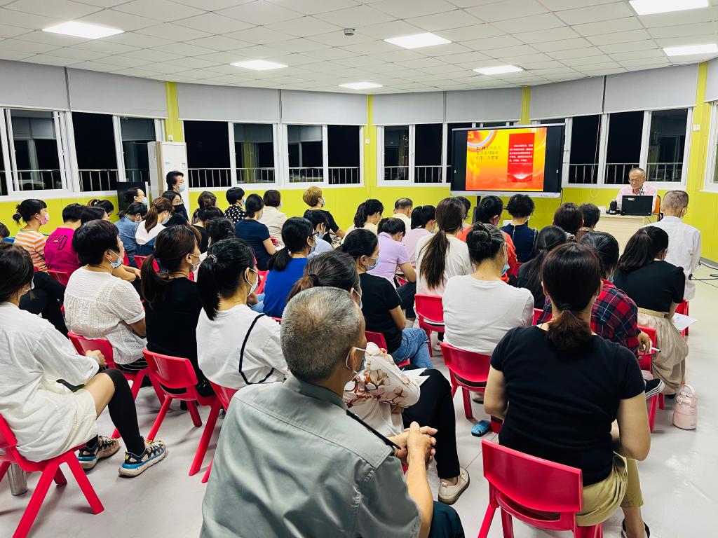 11月15日下午,厦门市金鸡亭幼儿园邀请思明区关工委宣讲团成员、福建省百佳五老故事员谢梦鹏老师作题为“聚焦二十大 砥砺新征程”学习党的二十大精神的讲座。幼儿园党支部、行政班子、关工委老同志和全体教职工参加会议。