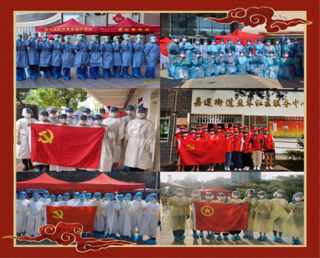 在疫情防控的关键时期,教师志愿者们在35度的高温天气下,身着厚重的隔离服,穿梭在社区核酸检测点以及社区卡口。天气炎热,但我们志愿者老师们以党旗在一线高高飘扬为旗帜,克服艰苦环境,有条不紊地录入信息、测量体温,每一个看似平凡的岗位,都是防疫筛查的重要支点,都在维持着防疫检测工作不断向前推进。