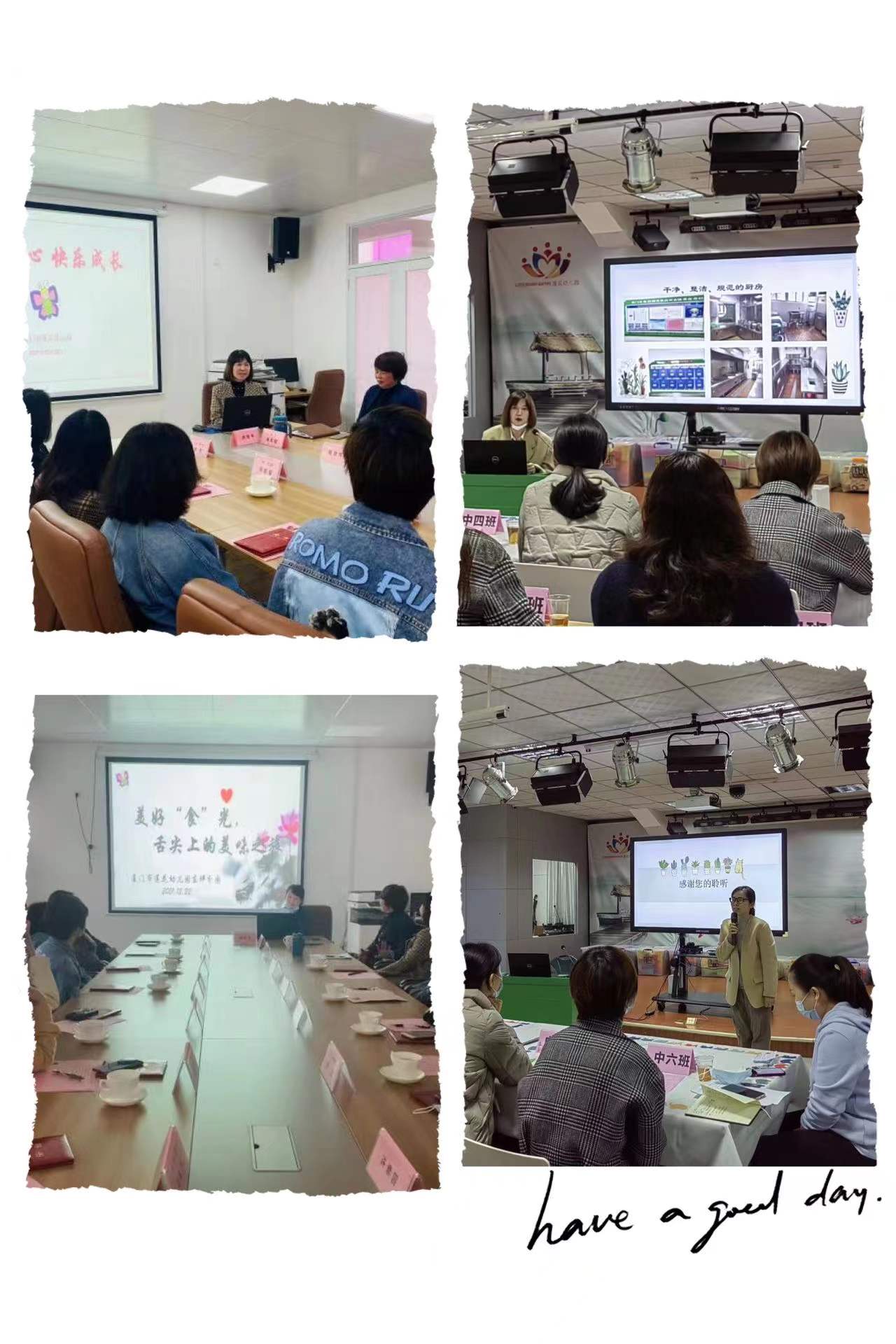 其次,教学副园长洪雅琴老师从保育教育、教师专业发展、课题研究等方面展开分享,以3个不同年龄段的真实教育案例入手,结合图片、视频生动地阐述了教师是如何将一日生活皆课程落实落地。让家委们在以点带面、以小见大中看见、读懂、感受我园树立“做幼儿专业玩伴”,基于“儿童的视角”,“让孩子成为主动的学习者”的理念与智慧。