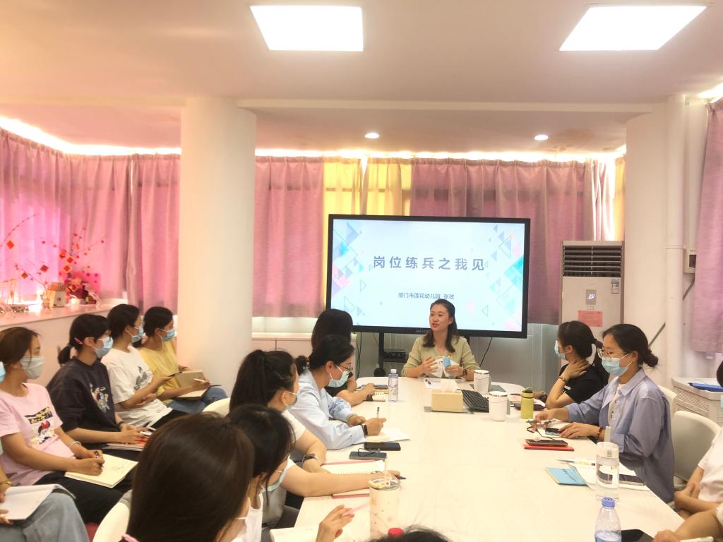 为落实《厦门市教育局关于开展2022年全市普通中小学幼儿园青年教师教学基本功岗位练兵活动的通知》(厦教发〔2022〕3 号)、《思明区教育局关于开展2022年思明区中小学幼儿园青年教师教学基本功岗位练兵活动的通知》精神,我园在林东阳园长的组织带领下,开展了系类岗位练兵园本培训。