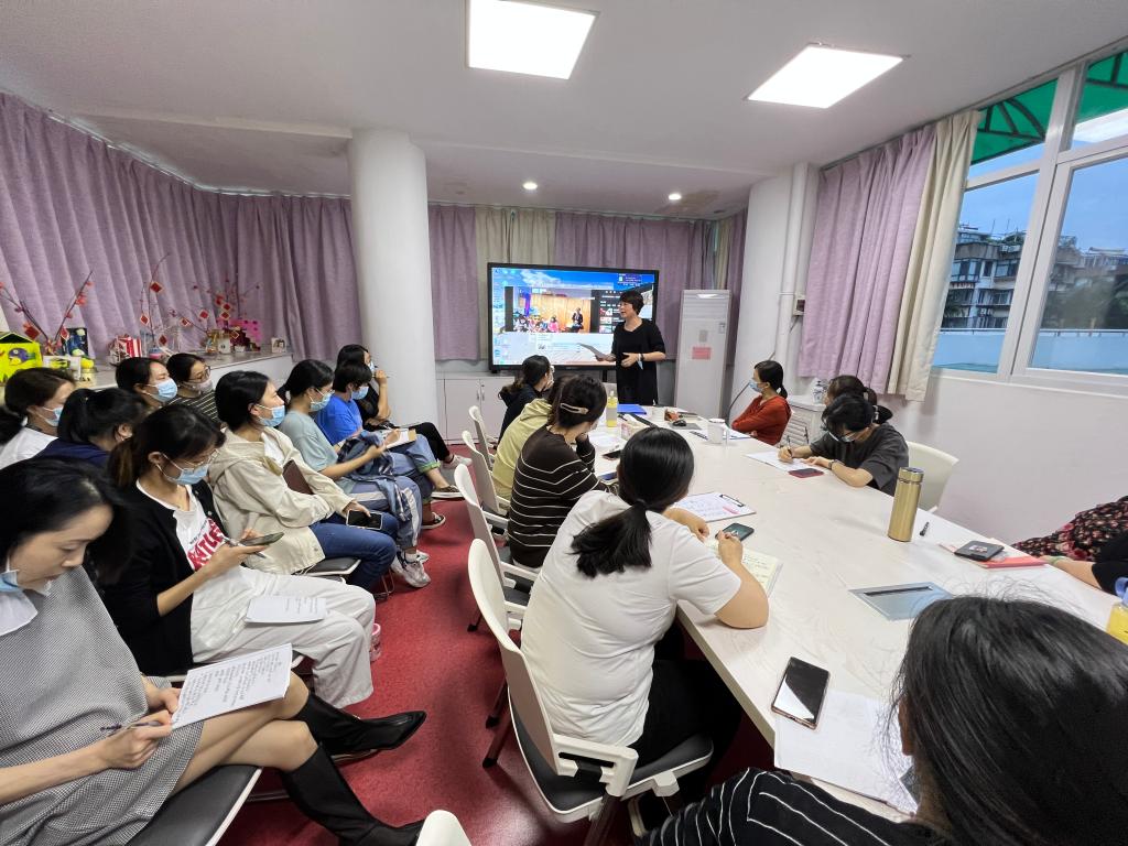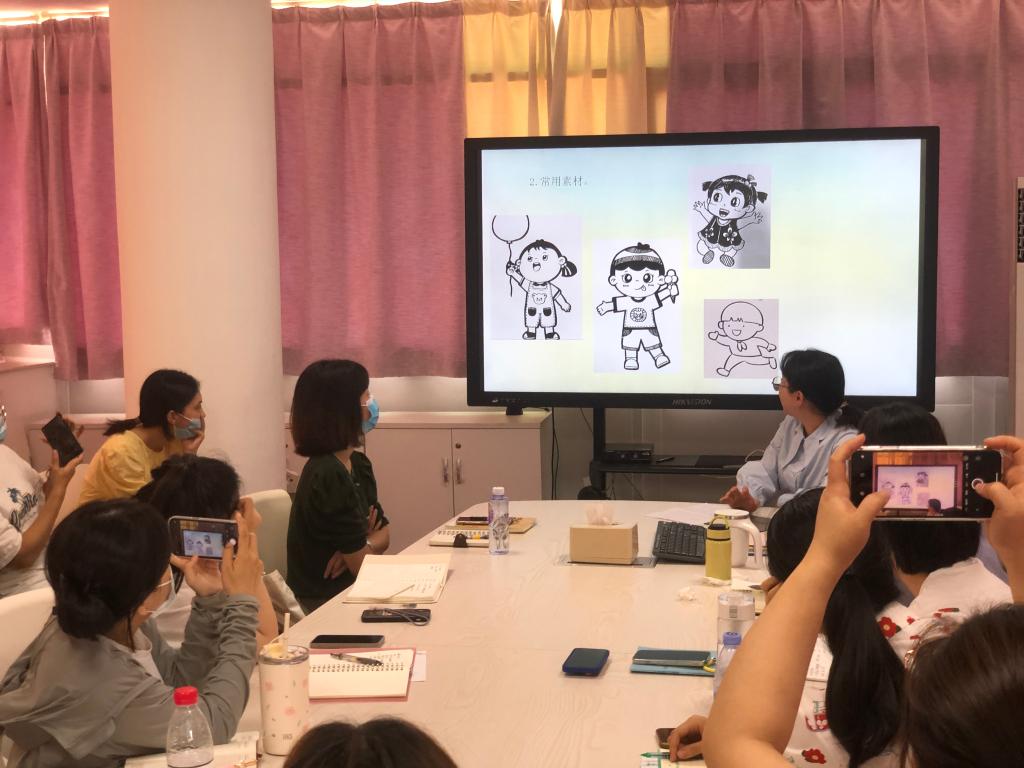 5月6日下午,由2021年市级创新赛大赛获奖者张弦老师,从基于现场的观察分析、教育活动设计、说播课等内容入手,围绕立足幼儿理念、问题解决思路,毫无保留开展经验交流。接着,由2020参加创新赛获奖者的蓝羚老师,从简笔画与教学融合的技能技巧,结合直观范画进行讲解;最后,林东阳园长通过案例分析、视频展播、现场示范方式,从片段教学的备课、注意事项、技能解析做深入讲解与互动。