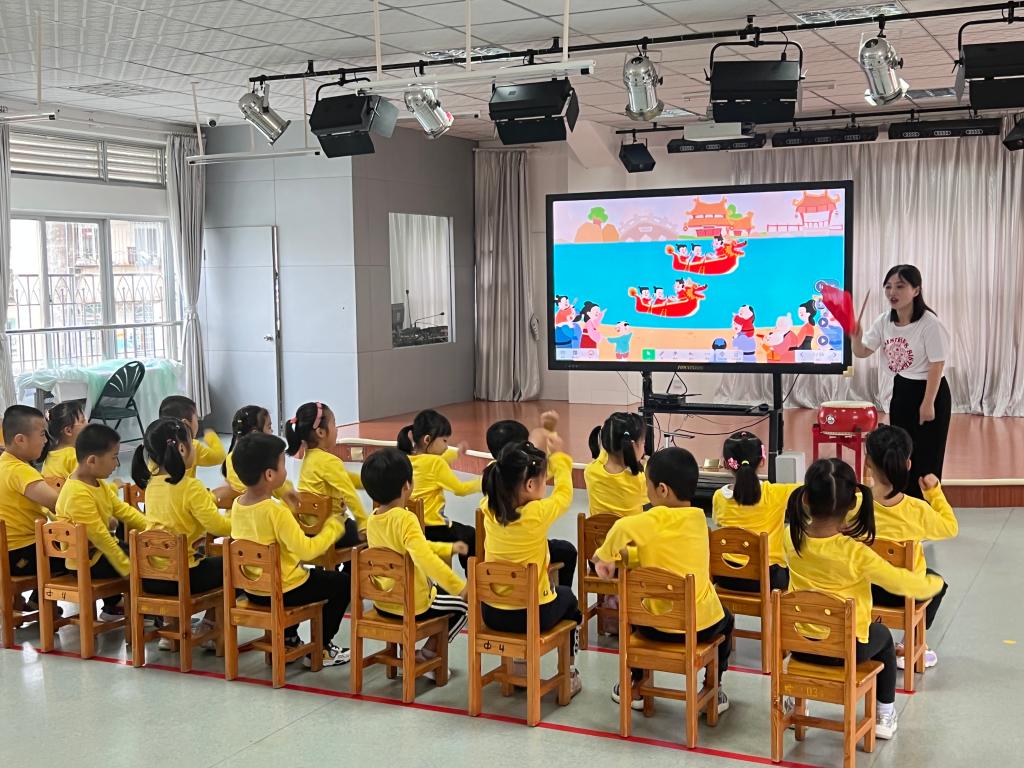 第七幼儿园黄琳琳老师基于中班幼儿的年龄特点,结合传统节日端午习俗活动——赛龙舟,开展了中班韵律活动《赛龙舟》。活动在紧张的龙舟赛事观看中展开,具有中国特色的鼓声中,富有喜庆色彩的音乐声中,幼儿感受音乐、用肢体表现,展开了别开生面的“划龙舟”。