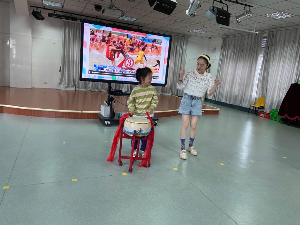 带来第二个活动的是蒋柳柳老师开展的端午节日美育主题活动《赛龙舟》,蒋老师在前期与幼儿探究“赛龙舟”各种玩法的基础上,基于幼儿兴趣,将端午节“赛龙舟”融入节日美育主题活动中,让幼儿在熟悉亲切的本土传统节日文化氛围中,得到美的熏陶和感染。让孩子通过视频观看、表演互动、游戏体验等形式,于轻松、愉悦的氛围中去发现、感受、表达端午“赛龙舟”中齐心协力、努力争先的和谐、健康之美。