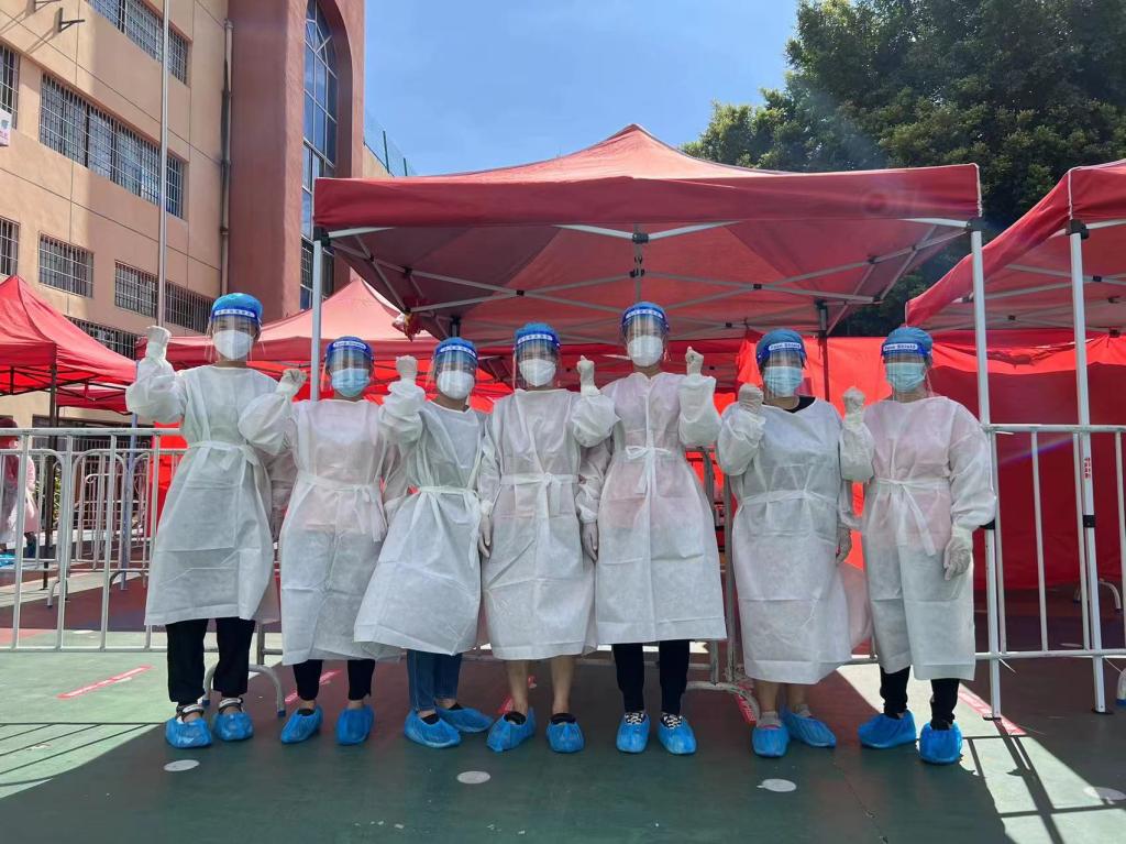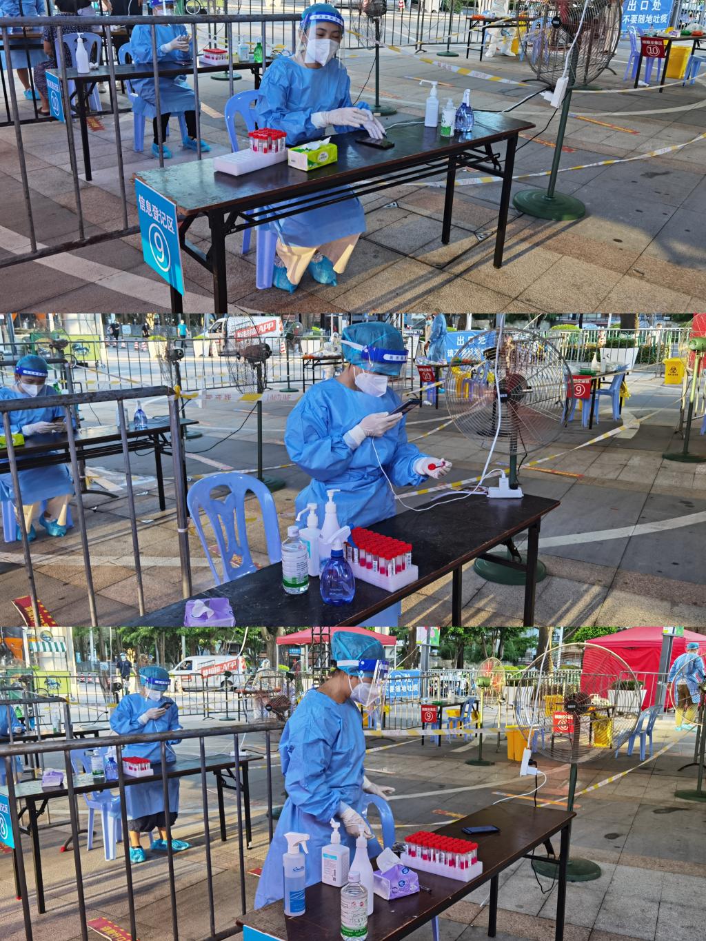 尽管头顶烈日高温,病毒近在咫尺,志愿者们仍挺身而而出,在第一时间操作上岗,承担采样点信息录入、现场维序、溯源摸排、配合巡查培训班等支援工作。披上红马夹,穿上防护服,他们是“召之即来,来之能战”的抗疫勇士,一双双汗水渍白的双手、一件件汗水湿透的衣服,是最为朴素的暖心坚守