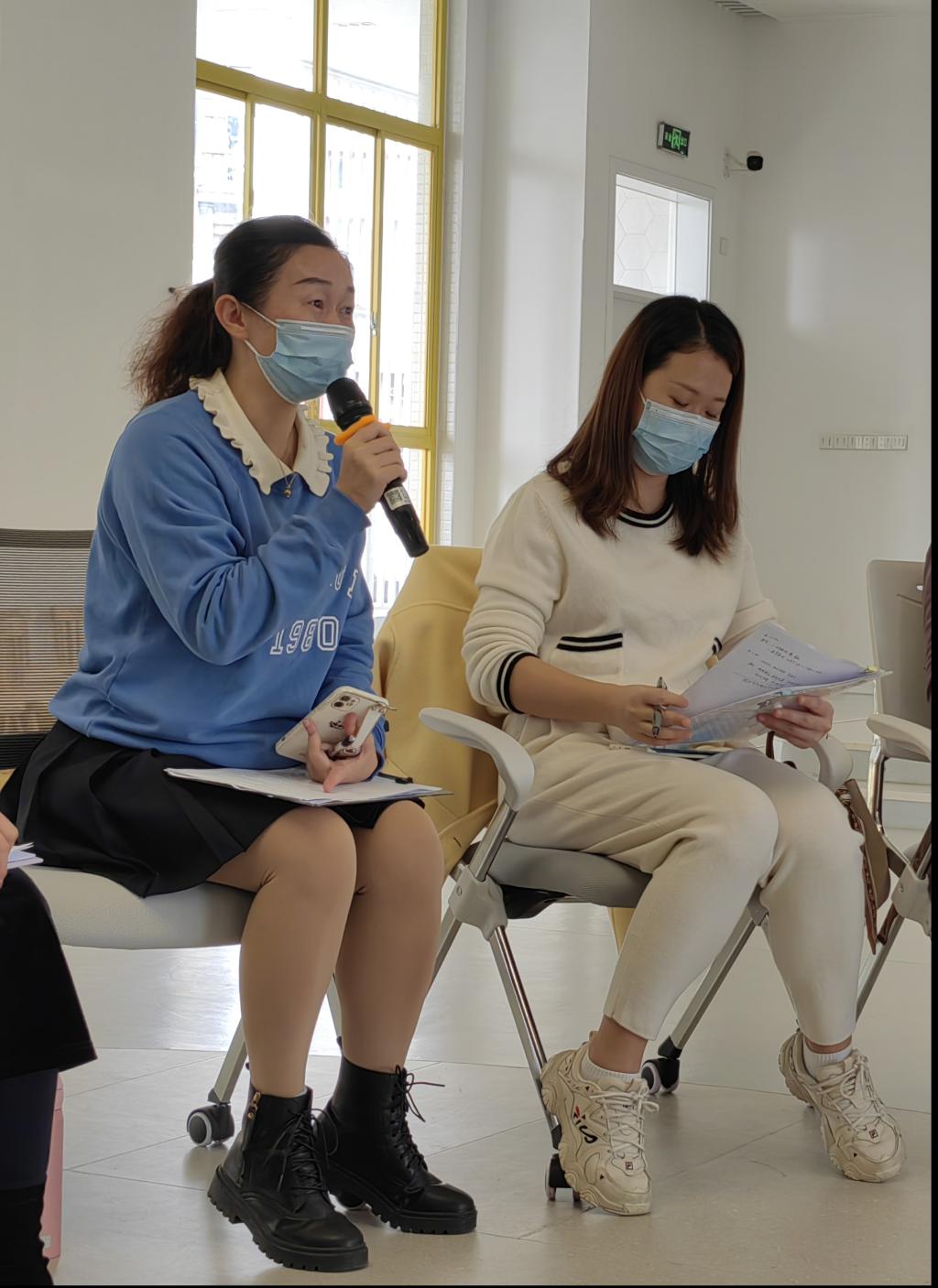 观摩后,三位组织活动的老师向大家介绍了活动的设计意图,并针对今天的组织,从幼儿年龄特点、幼儿学习现场的体验生发、体验式学习的推进过程、教 师基于体验式学习的组织进行了反思,表示“基于体验式的学习”要注重“身临其境”、“自由自主”、“耐心赏识”。