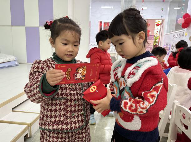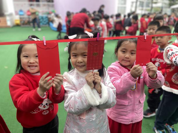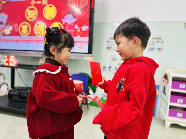 分园以年段为单位组织开学仪式,以传统与游戏相结合的方式,让孩子们感受元宵和开学的快乐。有小班的茶话会、新年赠祝福;