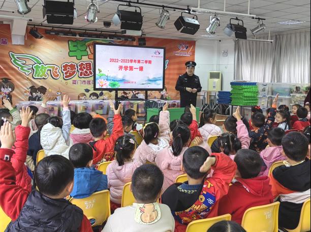 安全是一切活动的前提和保障。开学第一天,安全第一课和心理健康第一课有条不紊地在每个班开展着。我们还邀请了片区民警来到了我园,从交通安全、食品安全、校园安全三个方面展开了教育。通过这样的活动,不仅让孩子们沉浸在开学活动的快乐中,还增强了孩子们的安全意识与自我保护能力。