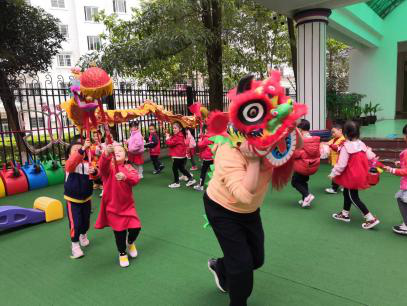 中班的龙灯送福、钓花灯和舞龙舞狮等;