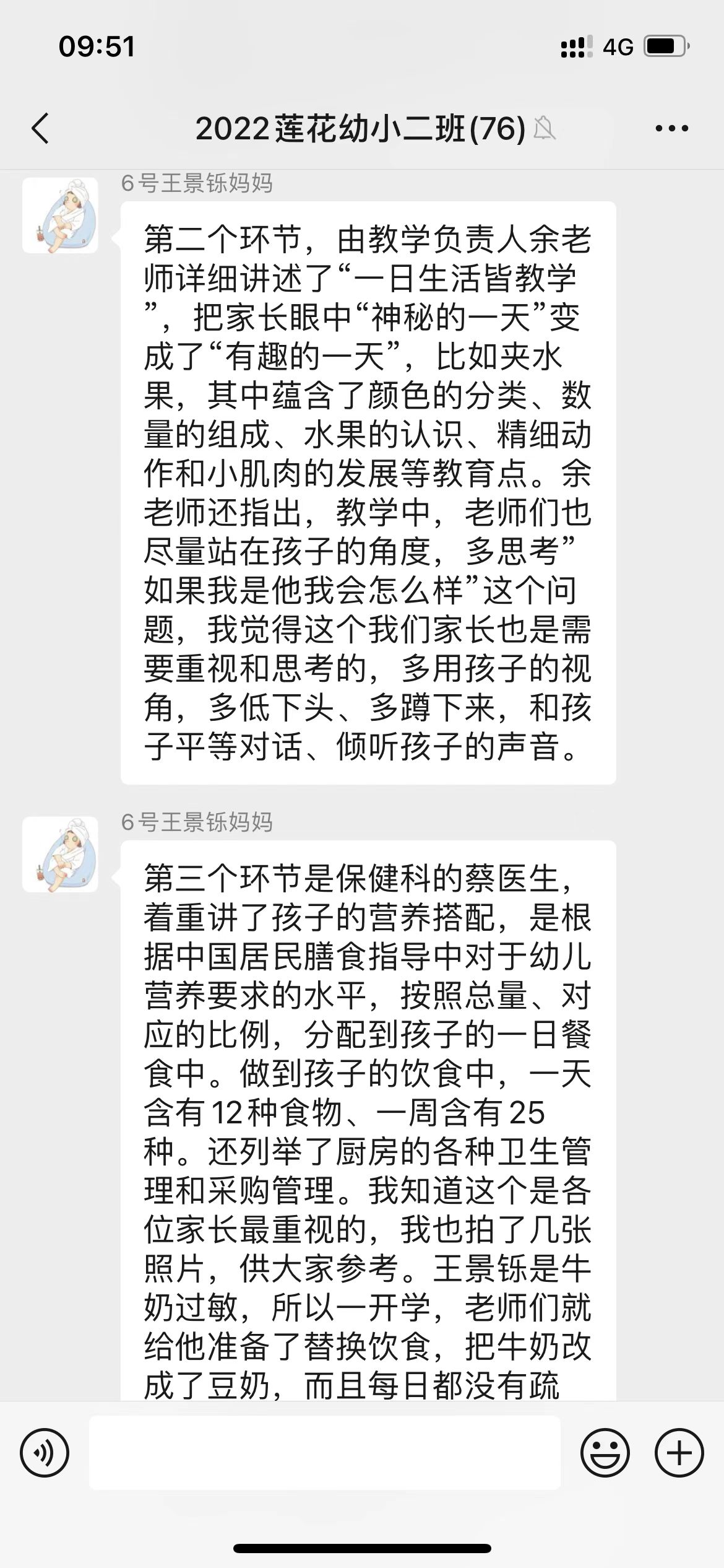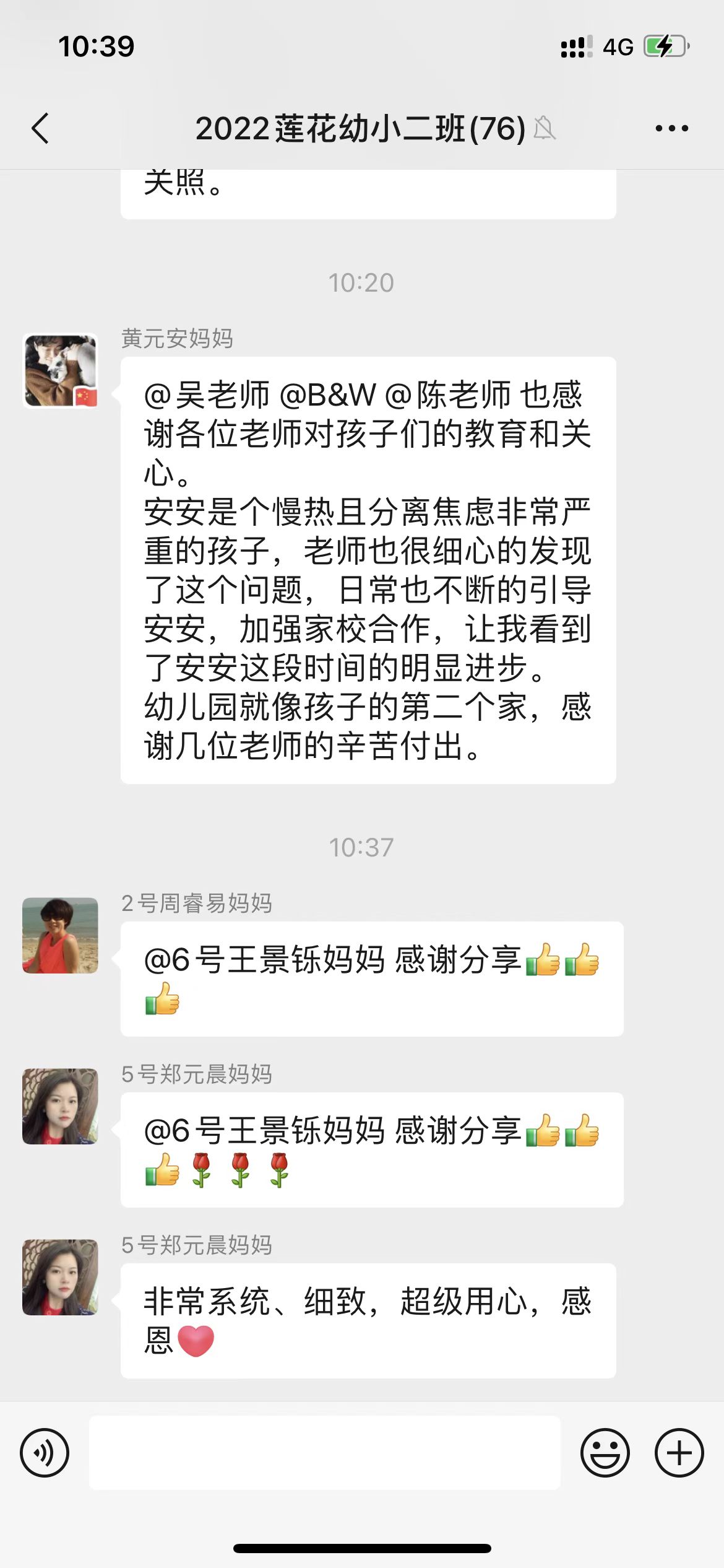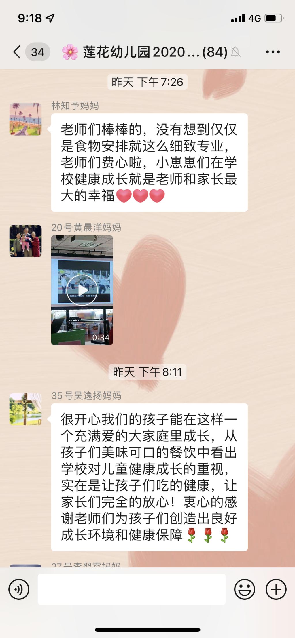 会议结束后,各家委发挥幼儿园与家长之间的桥梁作用,在班群里反馈与传达了会议的内容与精神,各班家长们分享了孩子在幼儿园的成长变化以及表达了对幼儿园、教师的感谢,班级家长们通过家委的反馈,对幼儿园管理的精细到位、活动开展的有趣有益、教师素质的专业有爱,均表示极大认可与赞赏!相信莲花幼儿园在家园共育中,将更为精彩绽放、越办越好!