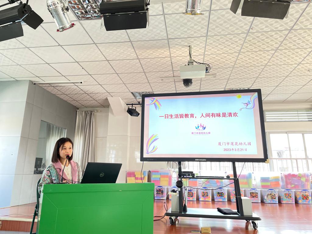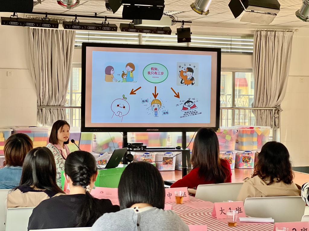 紧接着是余碧羚老师《一日生活皆教育,人间有味是清欢》的分享,余老师从自我管理学会成长、观察自然呵护童心、聚焦问题携手成长三方面,和家长们介绍感悟与践行“一日生活皆课程”的理念。用一个个真实的案例让家长们对幼儿的一日生活有了具体的了解,真切感受到教师是如何带领幼儿利用一日生活的各个环节在“玩中学、学中玩”,基于儿童需求,引发儿童的深度学习。并介绍了我园通过生活化、游戏化课程,促进了教师的专业成长,在教师获奖和集体获奖上屡获佳绩,让家长们知道教师在引导孩子们健康快乐成长的同时也促进自身专业素养的提升。