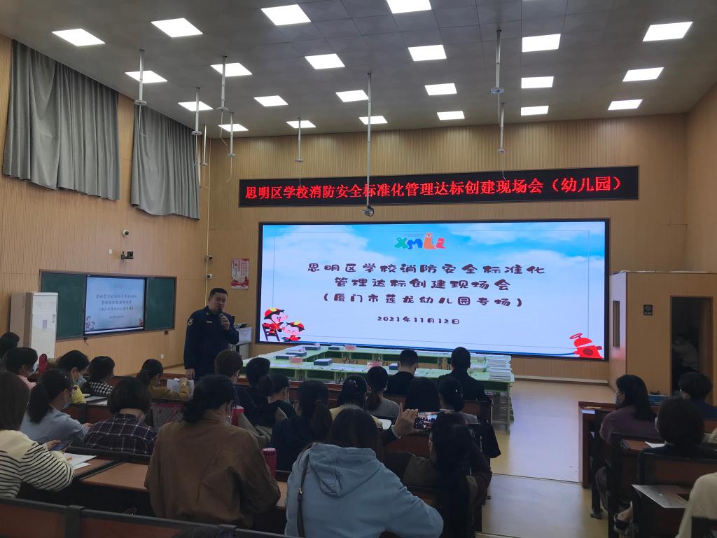 为进一步加强厦门市学校消防安全标准化管理建设,建立健全学校消防安全管理制度,提升消防安全管理水平,11月12日,思明区教育局在厦门市莲龙幼儿园组织学校消防安全标准化管理达标创建现场会,分别在莲龙幼儿园总园和莲龙小学设立主、分会场,相关消防安全管理人员和消防安全负责老师,共两百余人前来参观、交流、学习。