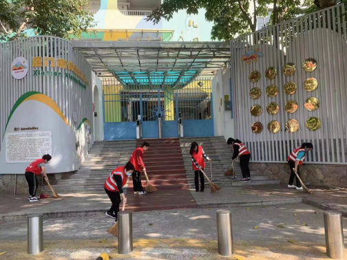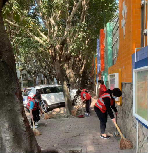 我园志愿者们在庄园长的带领下开展美化社区环境行动。志愿者们自带扫把、夹子、畚斗等劳动工具,重点清理街道上积存落叶、垃圾、捡拾白色垃圾等,营造“环境宜民”的居住环境。在清扫的过程中,大家分工合作,有的清扫,有的用畚斗装垃圾,有的倒垃圾……不怕苦、不怕累,对每一个路段都进行认真清扫,不放过每个死角。在志愿者们齐心协力,社区环境焕然一新。