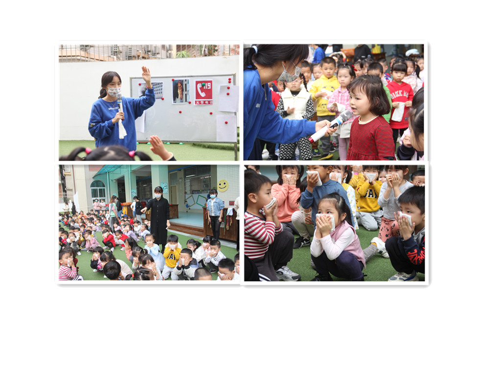 11月8日上午,滨海幼儿园开展消防主题的国旗下讲话,诙谐有趣的幼儿情景故事表演《小兔家里着火了》让全体幼儿学习家庭防火小知识。11月18日下午3点整滨海幼儿园开展全园消防演练。随着警报拉响,全园教职工及幼儿仅用2分48秒全部撤离至操场的安全区域,陈老师对本次演练进行小结,指出演练中的不足之处,并对全体教职工能第一时间到岗保护幼儿有序撤离表示了肯定。只有不断地完善演练的细节,才能保证孩子们的安全。