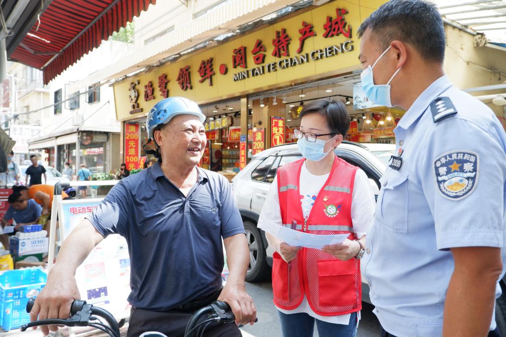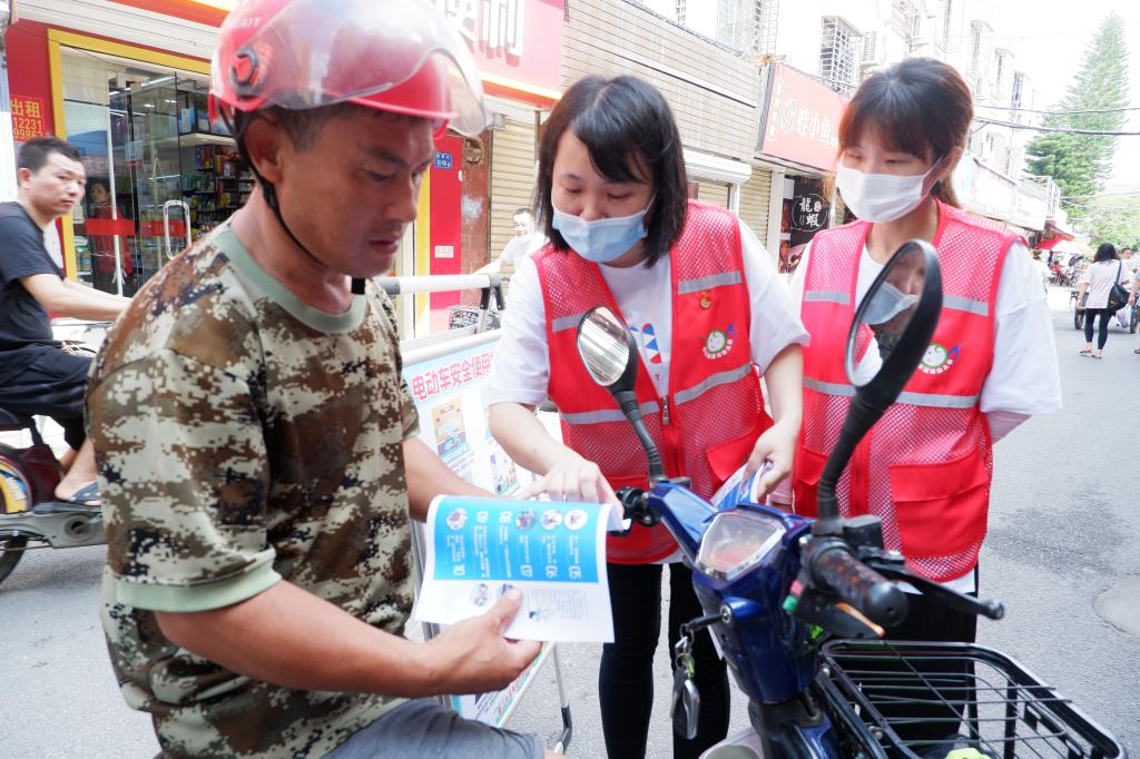 除了消防安全宣传外,我们还开展了“我为群众办实事”实践活动——电动车安全专项活动。黄厝街上到处可见党员教师的身影,他们正积极向群众宣传电动车安全实用指南,提醒来往居民正确佩戴头盔、禁止擅自改装电动车辆等,助推养成安全习惯。
