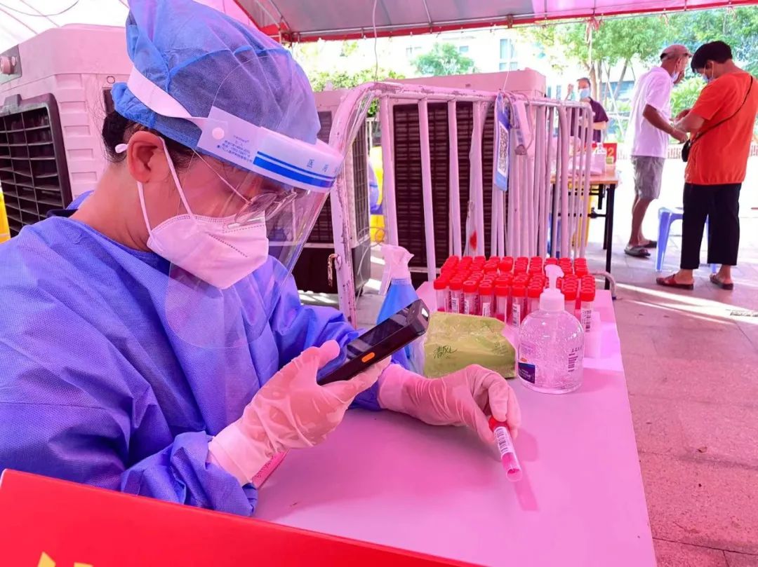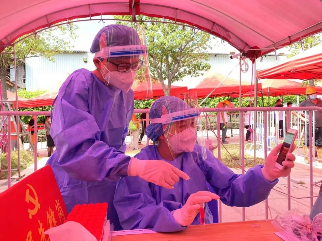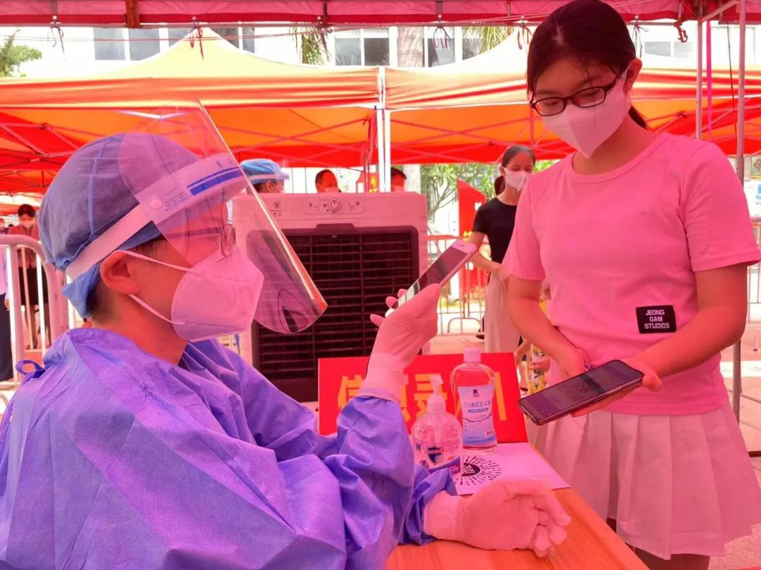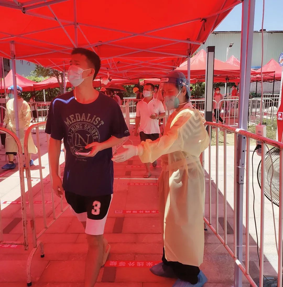 滨海幼儿园主动对接塔头黄厝居委会检测点,明确志愿者服务时间、地点、注意事项,做好志愿服务的线上培训,强调准时到岗、认真细致。炎炎夏日,滨海幼志愿者们坚守岗位,耐心录入信息,尽心尽力和医护人员、社区工作者并肩作战,帮助社区居民更高效、更有序地完成核酸检测工作。脱下防护服后,他们的手被汗水泡得发白,头发和衣服都湿透了。他们有早晨五点就出发的身影,有晚上八点的月光下的坚守,演绎了一个个战“疫”小故事,用实际行动践行共产党员的先锋模范作用和志愿者的服务精神。