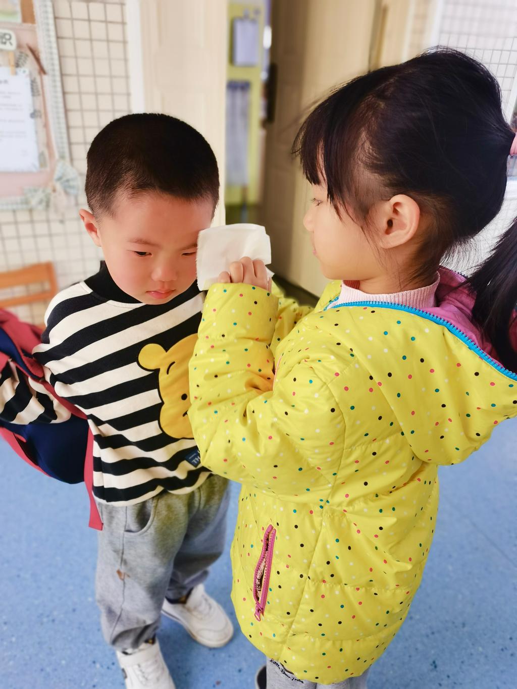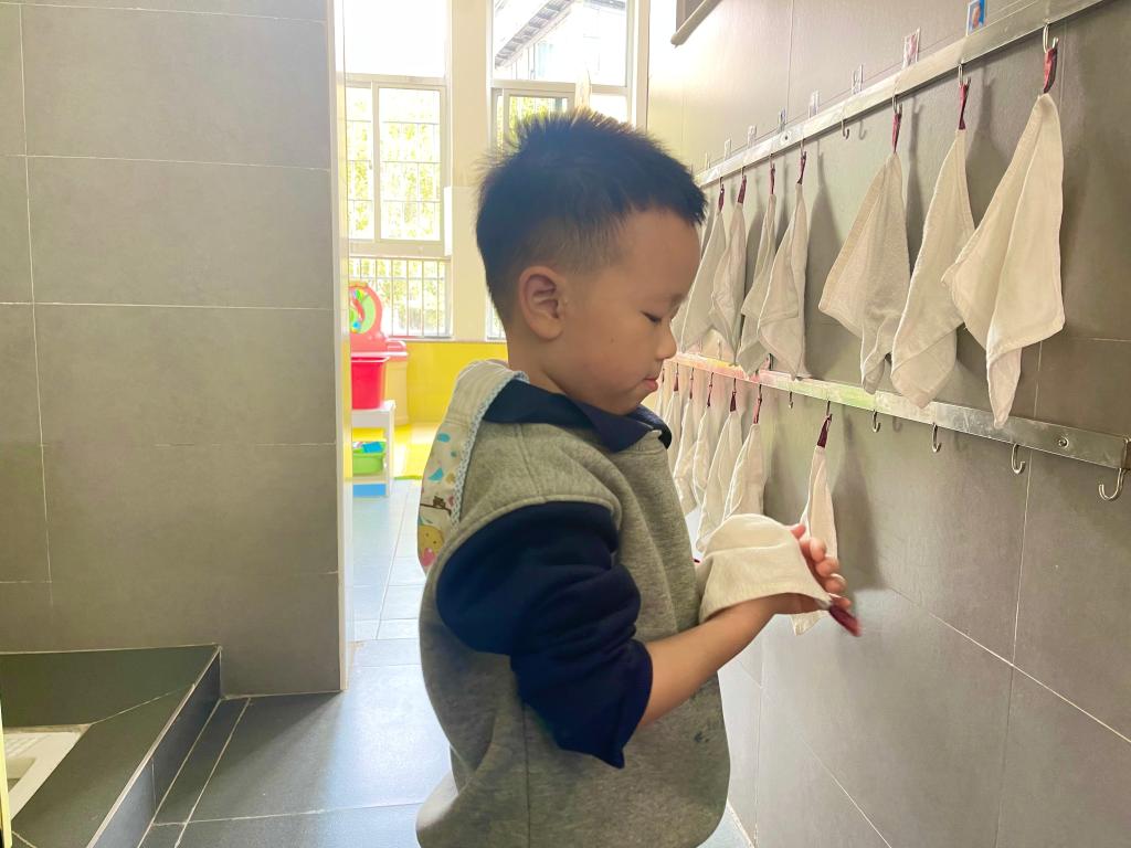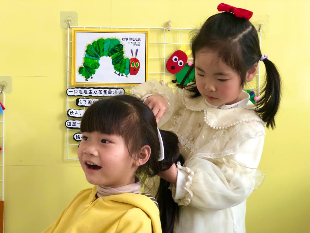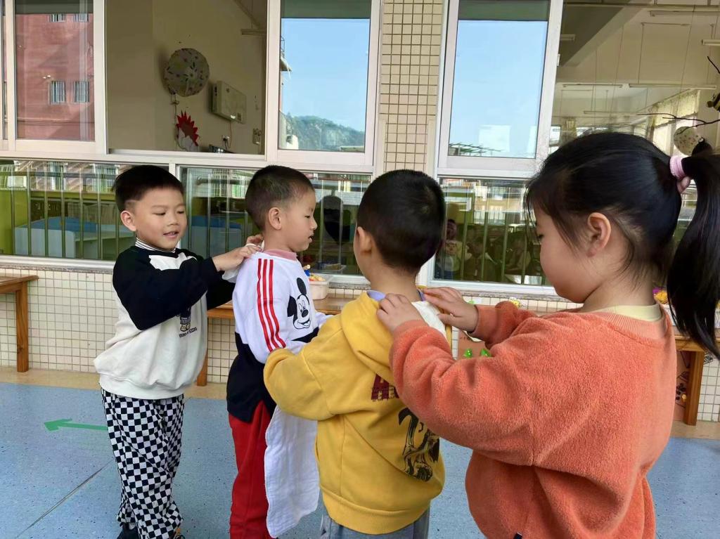 中段的小朋们友互帮互助,互相垫汗巾、梳头发、一起整理床铺,萌娃们用自己的行动学习雷锋叔叔无私奉献,热爱集体的精神。