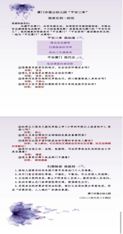 厦门市莲云幼儿园发放“ 平安三率”致家长一封信