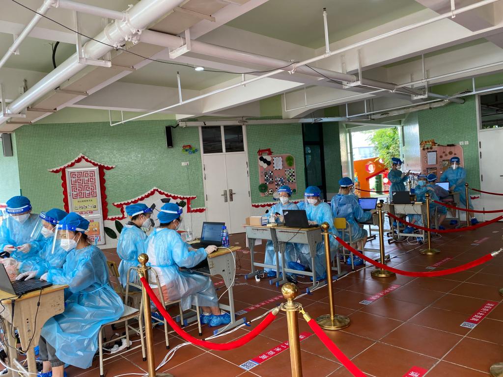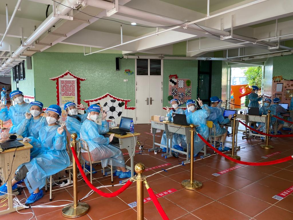 我园领导小组成员忙碌至凌晨部署志愿协助人员安排,老师们积极响应号召,化身为抗疫志愿者,参与到抗疫一线战场中,为支援核酸检测工作顺利开展而贡献出自己的一份力量!